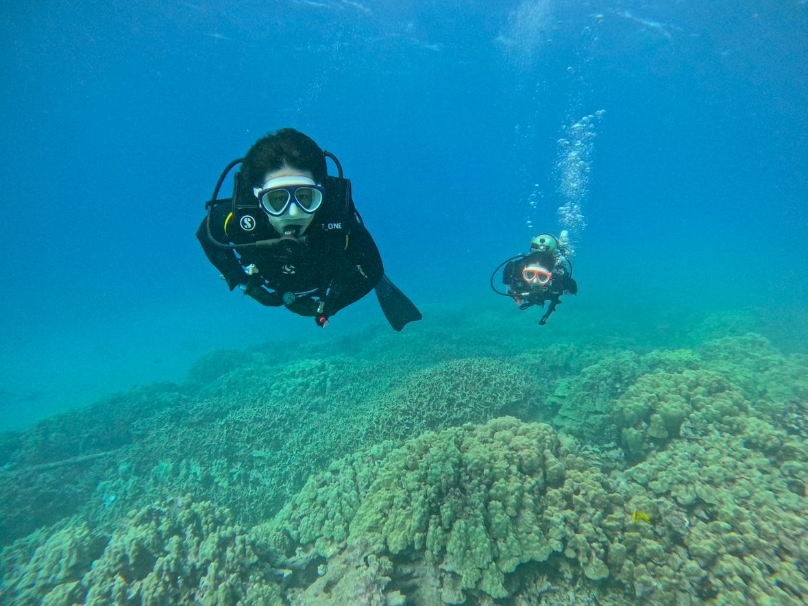 体験ダイビングはどうしても説明が長く、潜る時間は少ない...と思っていましたが、今回はたくさん潜らせていただきました!私のレベルを見ながら、ポイントやルートを臨機応変に対応していただいたおかげで、最高のダイビングとなりました。大満足!