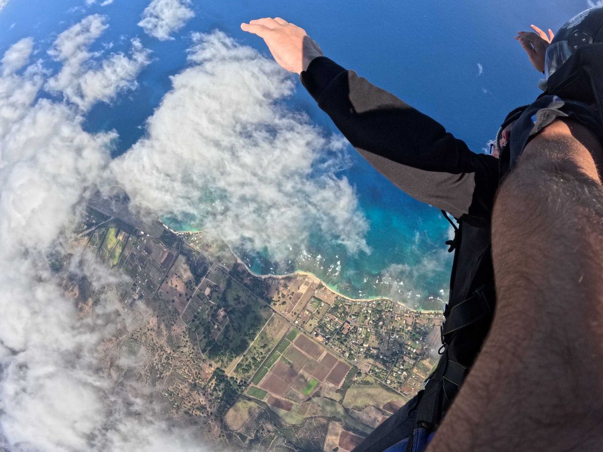 空中では雄大な海と空、遠くに見えるダイヤモンドヘッドやビーチがとっても綺麗で、ありえない高さから生身で風に煽られて、爽快さと少しの怖さに大はしゃぎしてしまいました。