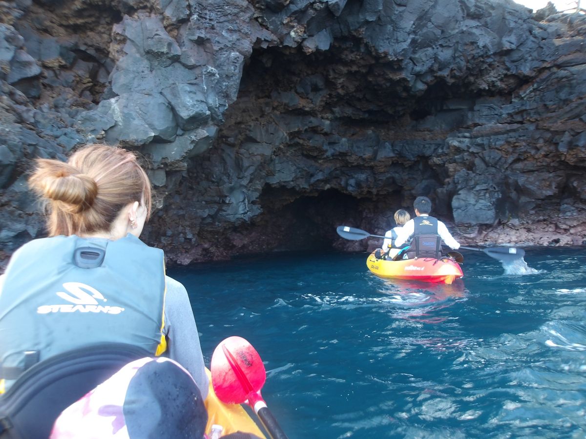 妻と息子と三人でレンタカーで現地へ行きました。路駐しますが駐車禁止帯に注意。7:00前に日本人ガイドのノニさんに声をかけられて手続きを済ませさっそく開始。準備運動をしてシーカヤックの漕ぎ方を習った後、海に入っていよいよシーカヤック開始。三人とも初めてだったので上手く漕げるか、体力がもつか心配でしたが、ノニさんが我々の様子をみて随時、指導・休憩をしてくれたので無事漕ぎきりました。海中洞窟では波が打ち寄せてドパーンと奥からの咆哮が迫力でした。うっかり危険なエリア近づくとノニさんはちゃんと注意してくれて終始安心してシーカヤックができました。シュノーケルポイントでは様々な小魚を見ることができました。魚の種類を勉強していけば良かったと思いました。海から見るビッグアイランドも壮観で、すてきな写真もたくさん撮ってもらえました。途中では島の歴史やグルメ情報などの話もしていただいて凄く楽しめました!おすすめです!