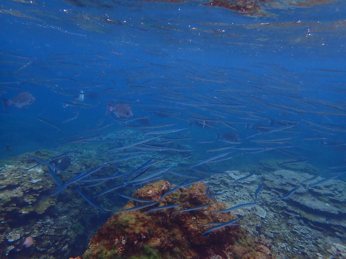 ホテルまで迎えに来ていただき、シュノーケリングスポットへ到着。足のつくところで水に慣れて、いざシュノーケリングスタート!入った途端に綺麗な魚がたくさんいました。そしてウミガメにもすぐに会えました。八丈島のウミガメは警戒心が薄くてかなり近くでみれました。そしてサヨリの大群にも遭遇して迫力満点!30分ほどのシュノーケリングでしたが、大満足でした!
