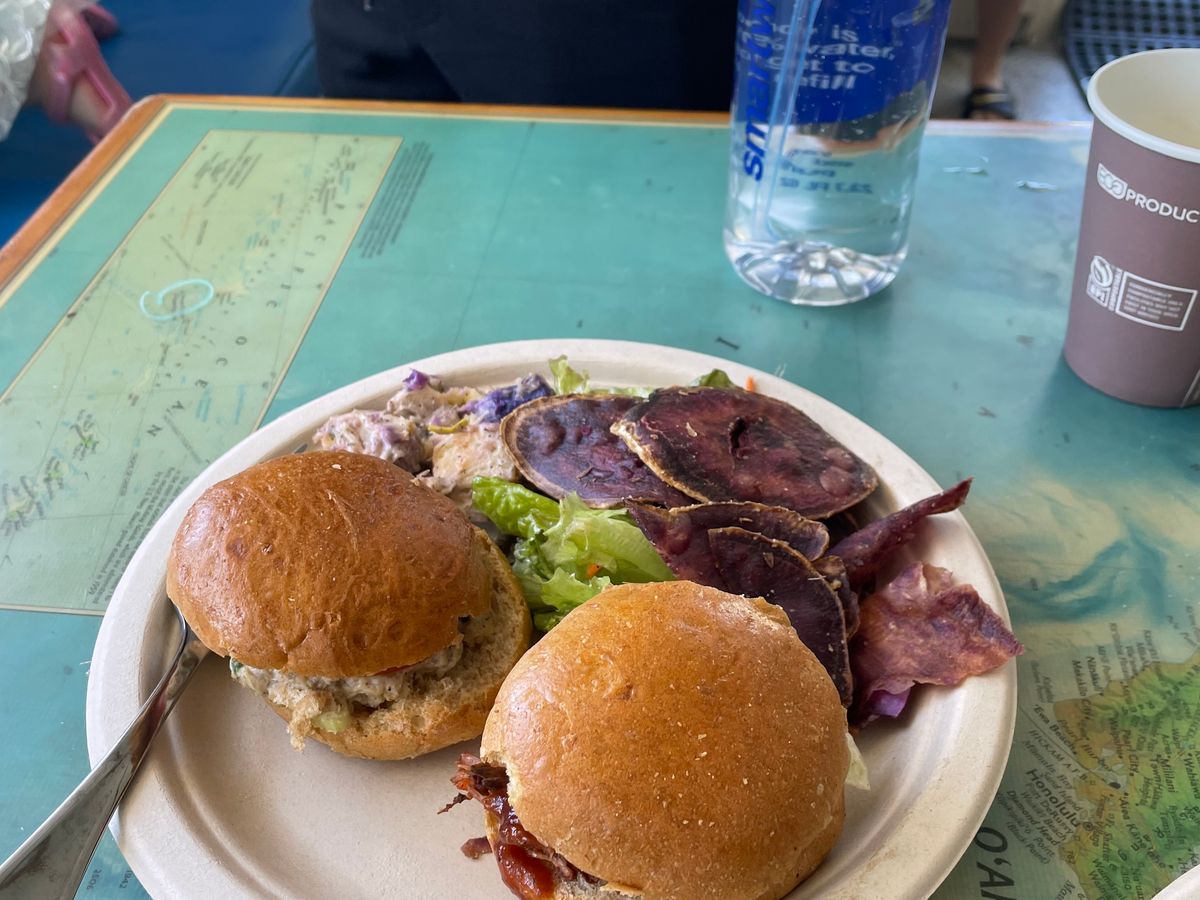 チキン、フィッシュ、タマゴのサンドイッチでした。ソースがよくマッチして、とても美味しかったです。食べやすいサイズに切られていて、手が汚れないようにラップされていたのも◯。