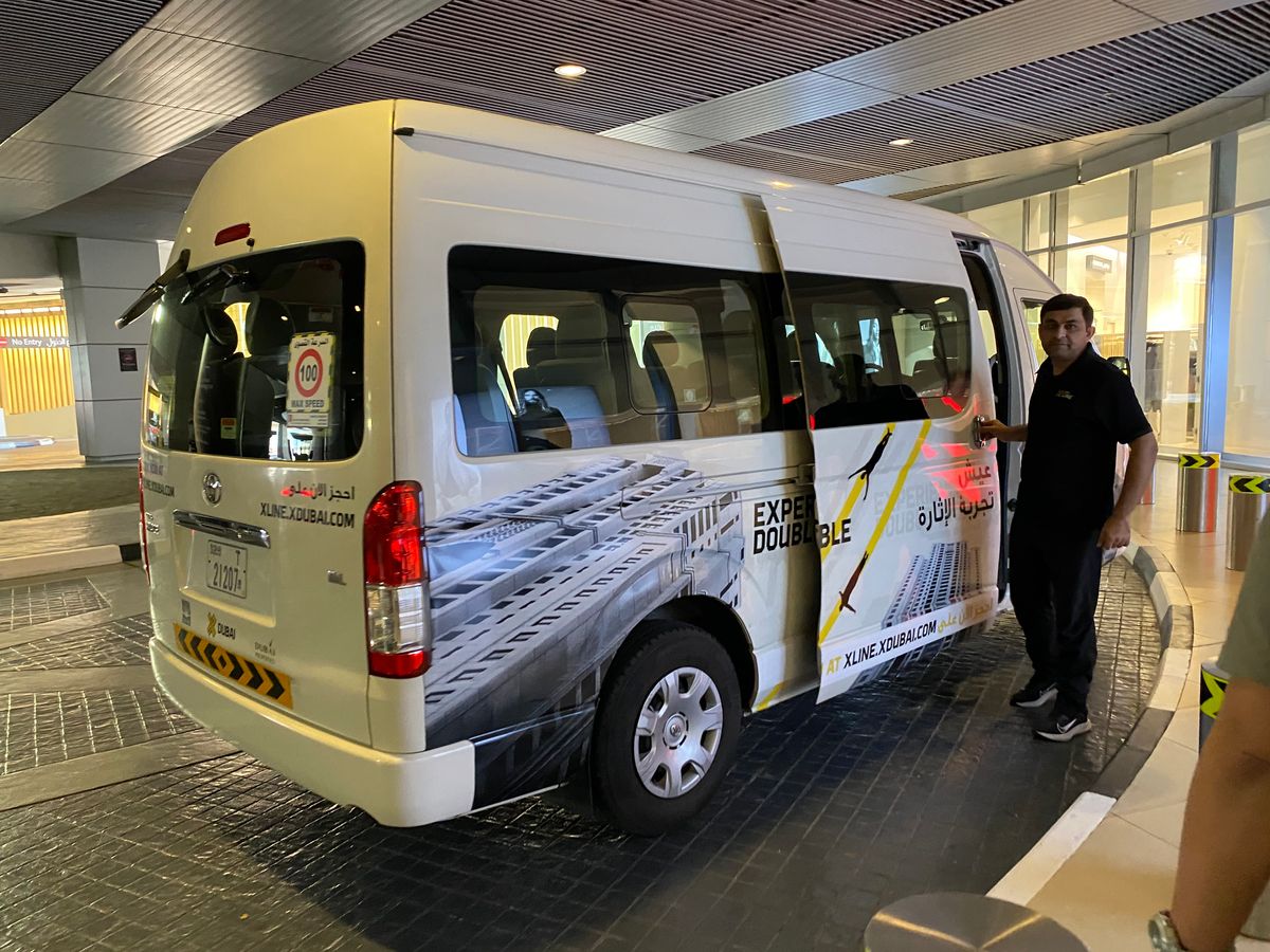 受付済ませた後、マイクロバスでドバイマリーナモールから車で15分程走らせた建物の屋上へ。