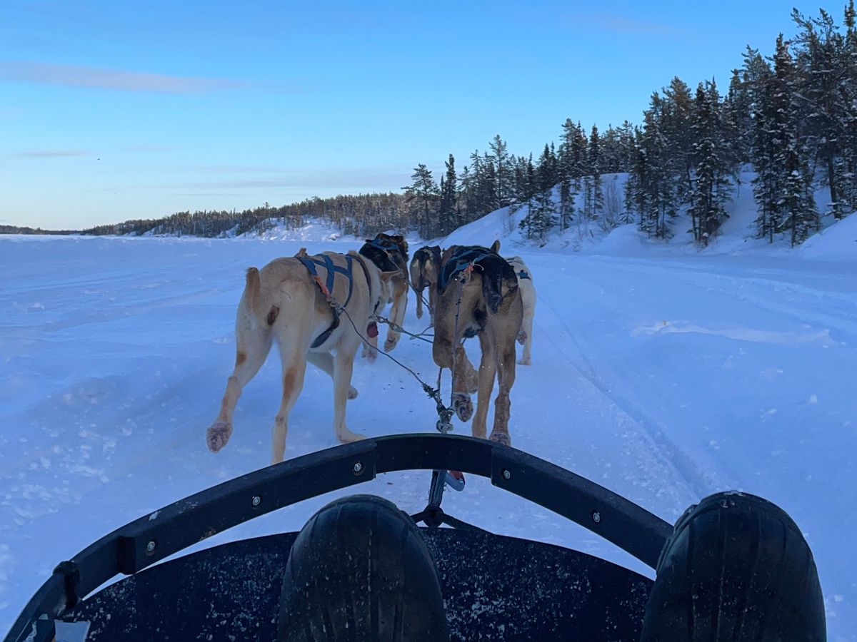 湖を一周して終わり。わんこたちは頑張って引いてくれたし、風に当たる顔はすごく寒かったので犬ぞりの時間はこれくらいで良かったけど、値段の割には高いなと思いました。