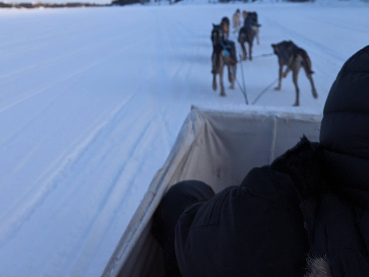 犬ぞりは初めての体験で楽しみにしていました。日本人のガイドが説明してくれたので、安心して体験できました。約8kmの距離を5頭の犬がそりをけん引しますが、意外とスピードが出るので楽しいかったです。気温が低いので、素肌が風に当たらないようにしないと凍傷になる恐れがあると説明していましたが、ゴーグルを用意して行ったので大丈夫でした。