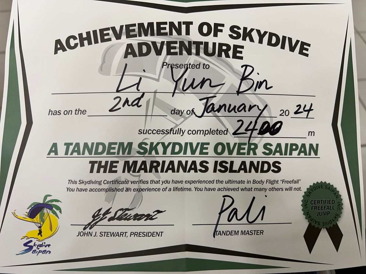 セスナに乗って上空から景色を見て綺麗だなぁと感心してました 飛び降りるのも当たり前のように次から次へと降りていきあっと言う間に空への旅に連れて行かれました