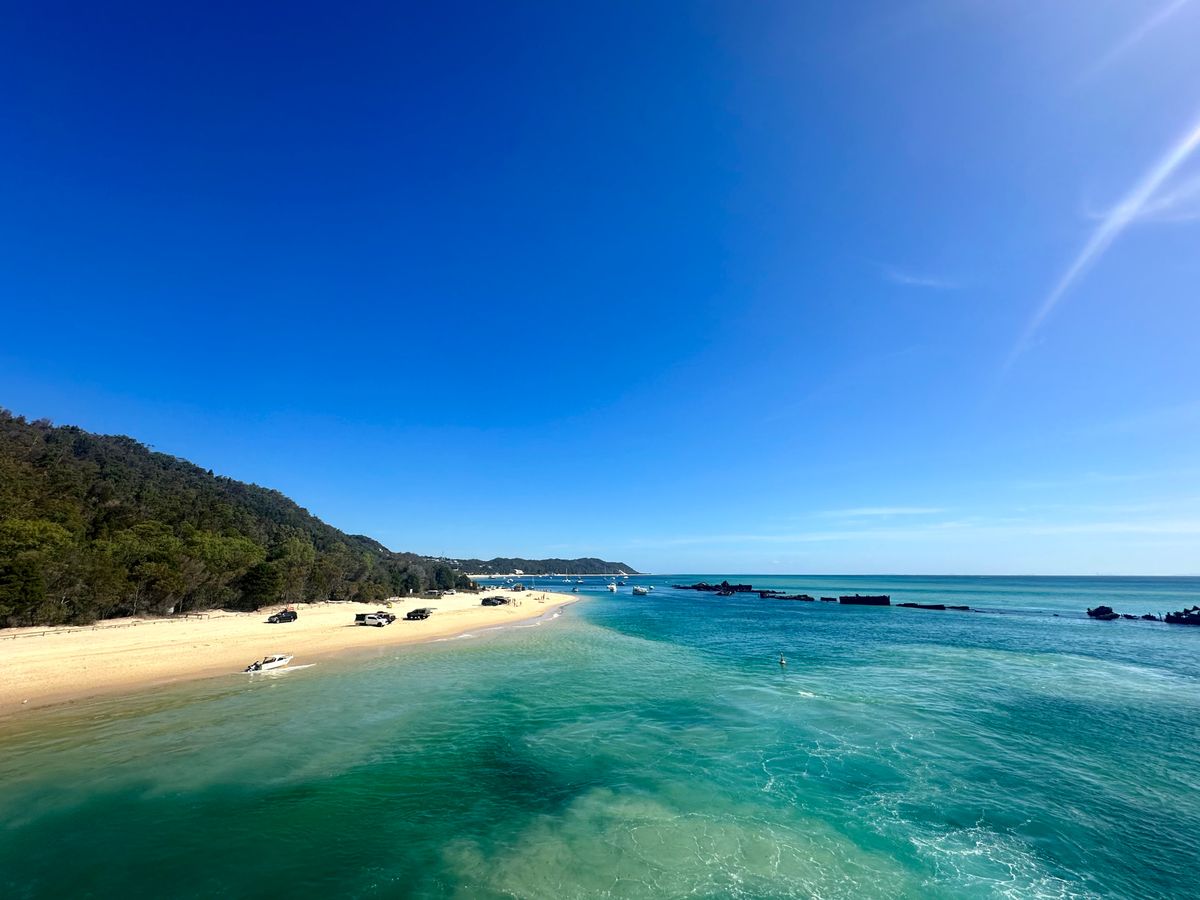 ツアーは大きな団体です。バスに乗る時に、色々記入しないといけないので早めに着く方がいいです。バスの席も早い者順なので、遅いとバラバラに座らないといけません。モートン島に着いてから、先にビーチでカヌー、シュノーケリングするグループとサンドトボカニングするグループに分かれるようです(リストバンドの色で分けられた)スケルトンのカヌーは魚が見れて最高です。防水ケースにスマホを入れて、撮影されることをお勧めします。シュノーケリングはそれぞれ好きな時にできるのですが、ライフジャケットをつけて泳ぐと恐ろしい速さでビーチの端に流されます。スタッフは気づいてくれず、命の危機を感じました。水上バイクに乗っているスタッフに声をかけると、難破船のところまでバイクで連れて行ってくれるので、声かけした方がいいです。泳いだあとはすごく寒いので、厚めの上着とバスタオルがあると良いです。サンドトボカニングへの道のりは、車がすごくは揺れます。酔いやすい人は酔い止めいると思います。砂丘は傾斜がかなり急です。滑る時に前の部分をしっかり持ち上げないと、すごい量の砂を浴びることになります。持ち上げていても、顔中の穴全てに砂が入ります。コンタクトレンズだったのですが、悲惨な状態になりました。ゴーグルがあればいいかもしれません。1日でいろいろな経験ができてよかったと思います。