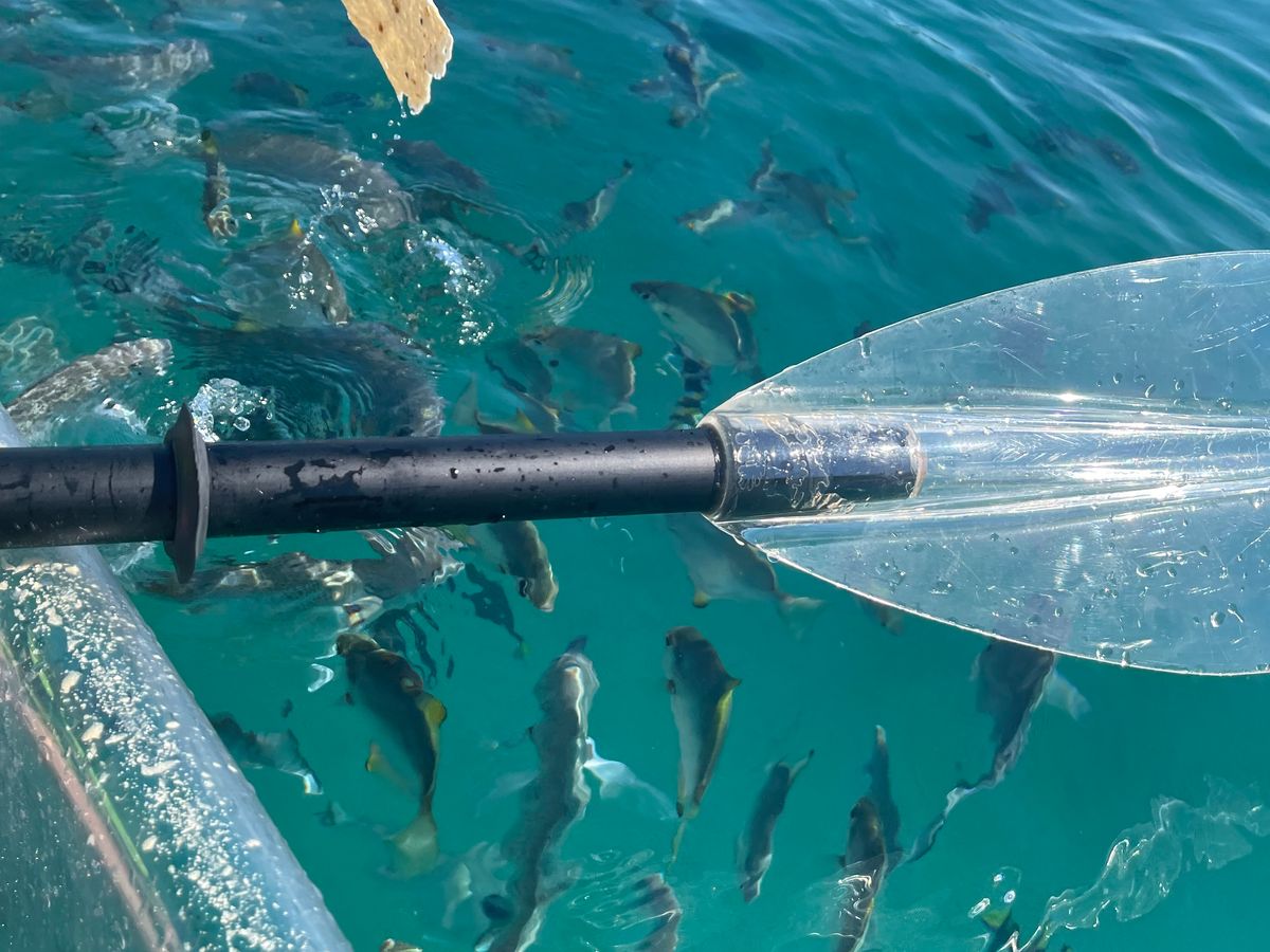 海は最高にきれいでシーカヤック、シュノーケリングで沢山の魚に出会えます。現地ガイドがついて決められた範囲での行動なので危険もあまりありません。何かあればジェットスキーで見回っていますので助けに来てくれます。