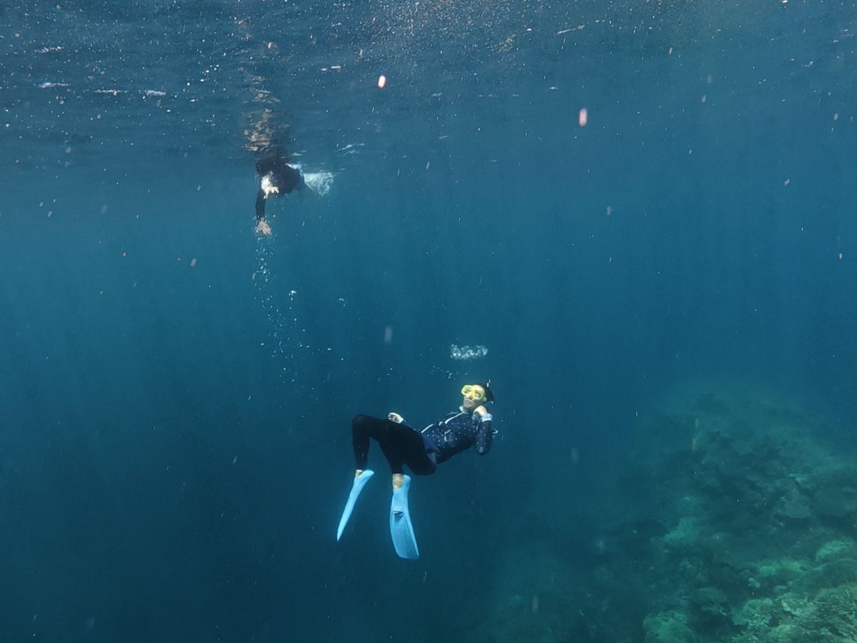 ヒルトゥガン島の沖でシュノーケル。