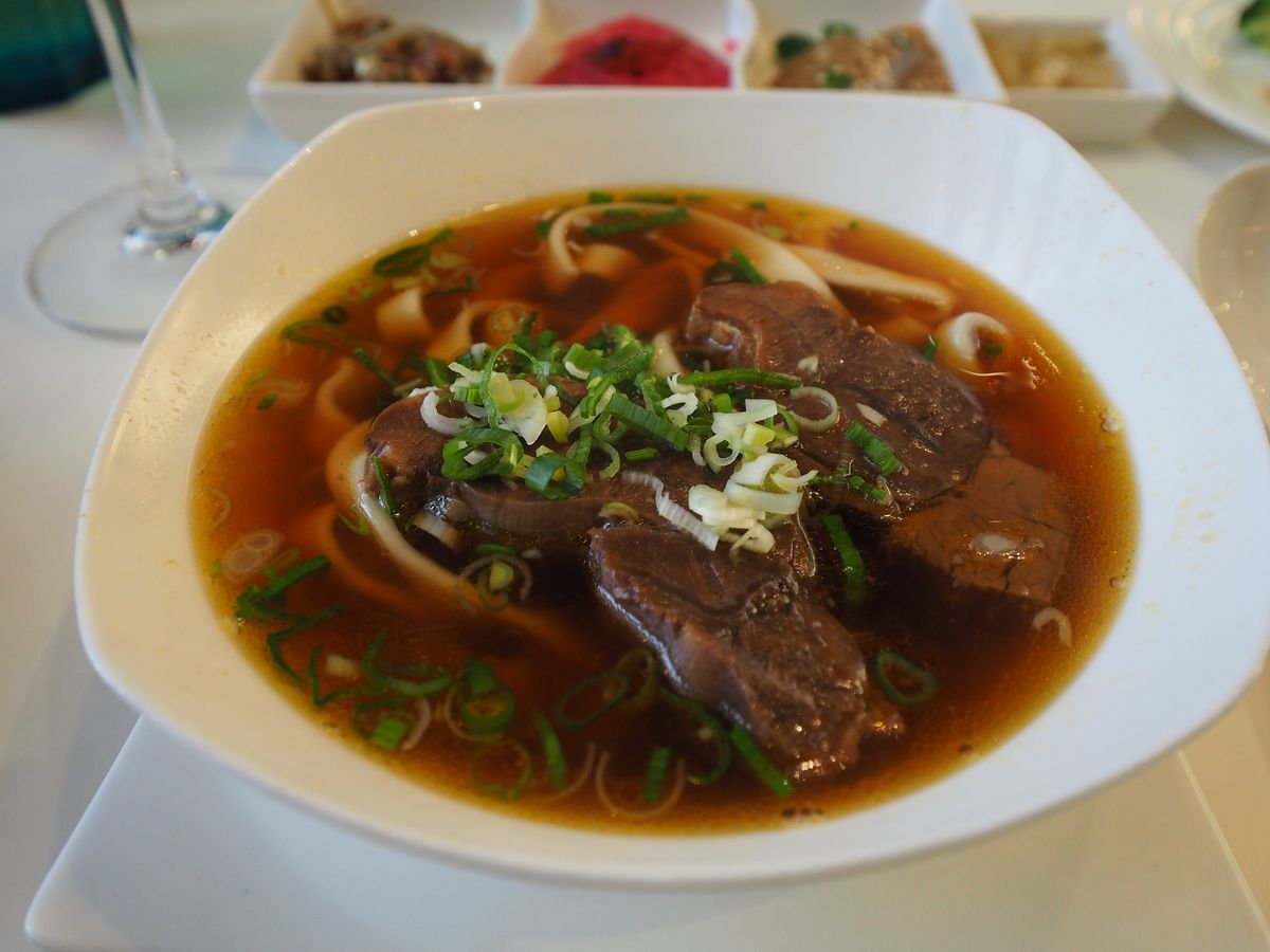 おいしい牛肉麺がメインのコース料理に赤ワイン、デザートもついていて満足できました。