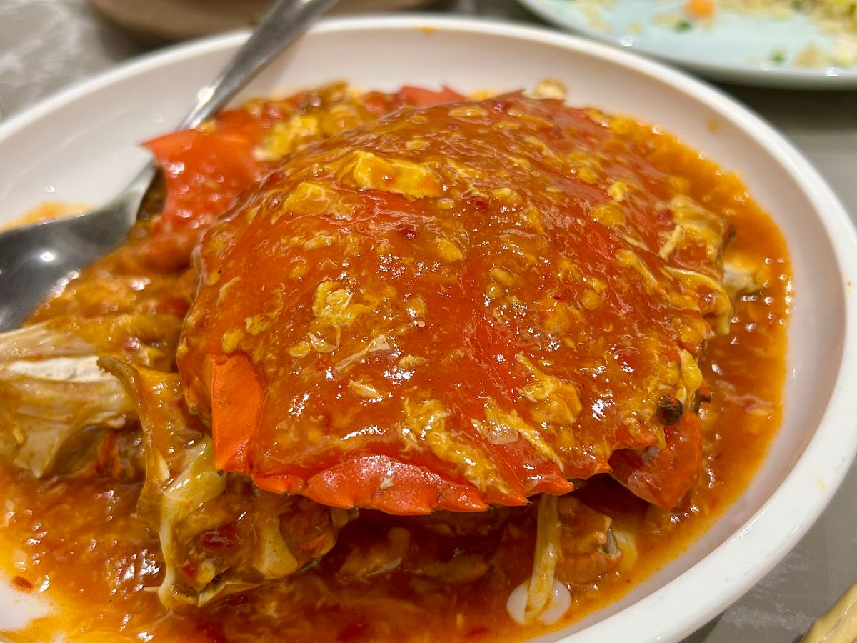 チリクラブの蟹身を食べるのは案外大変ですが濃厚で美味しい!