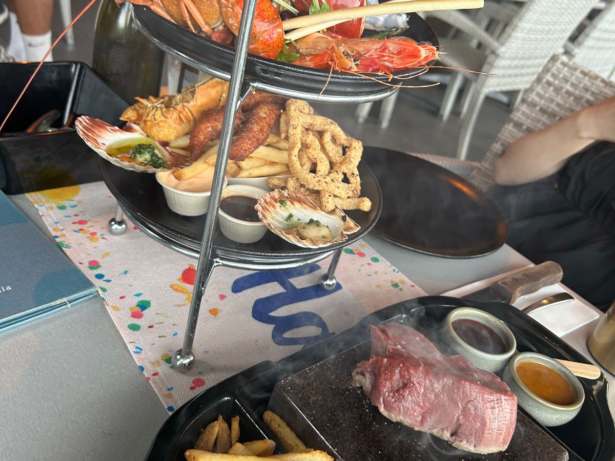 食べ物はシーフードタワー?と石焼ステーキを頼みましたが、女子3人で最後苦しくなるほどボリューミーでした、、!