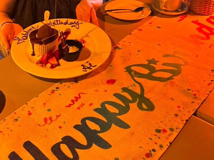 サプライズでバースデープレートをお願いしていたのですが、テーブルにすでにhappy birthdayと飾られており、内心サプライズがバレないかひやひやでした笑笑