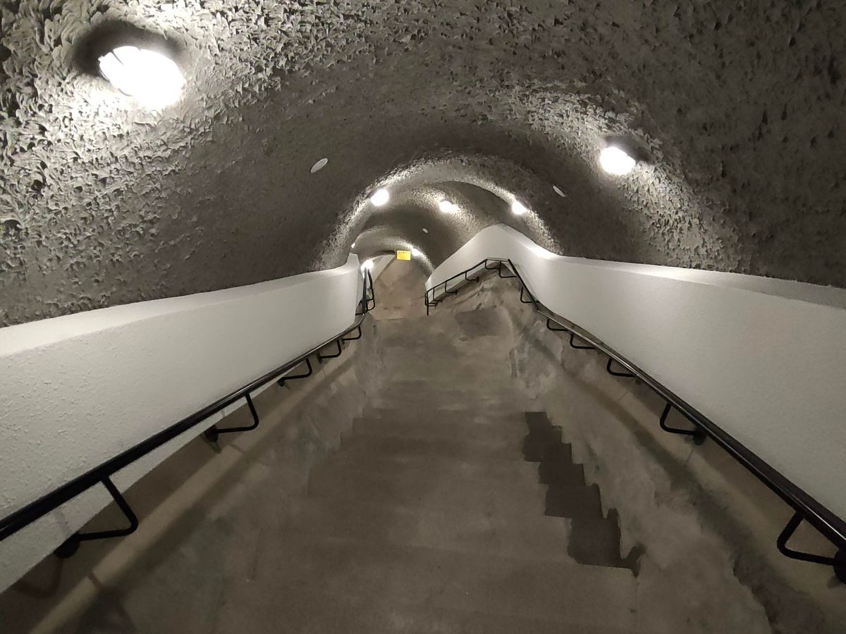 杖をつかれた老夫婦がおられましたが、常に若い人が支えないといけないような階段です。
