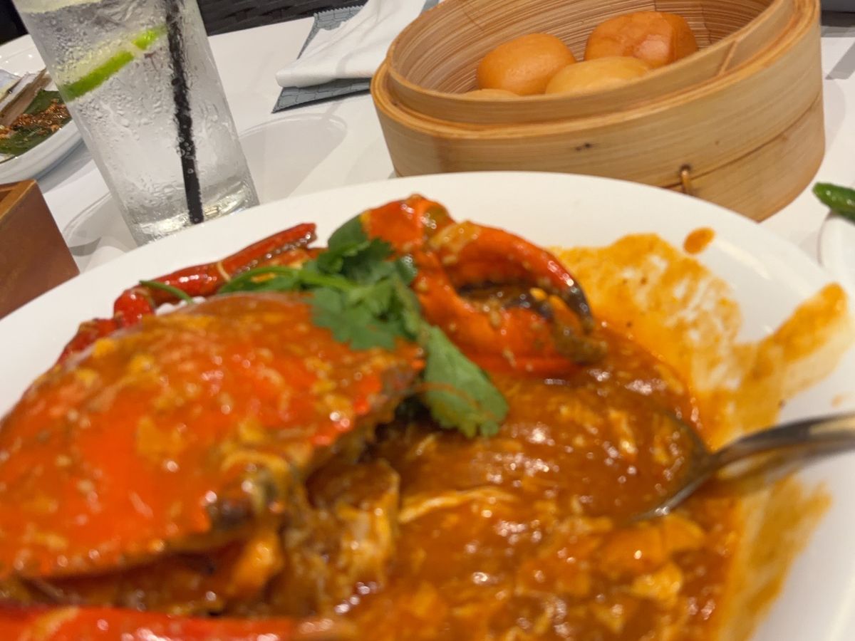 チリクラブ は、2人前でも大きくて、揚げパンと一緒に食べて、それだけでも普段ならお腹いっぱいになりそうでした。お腹を空かせて行ったので完食できました。