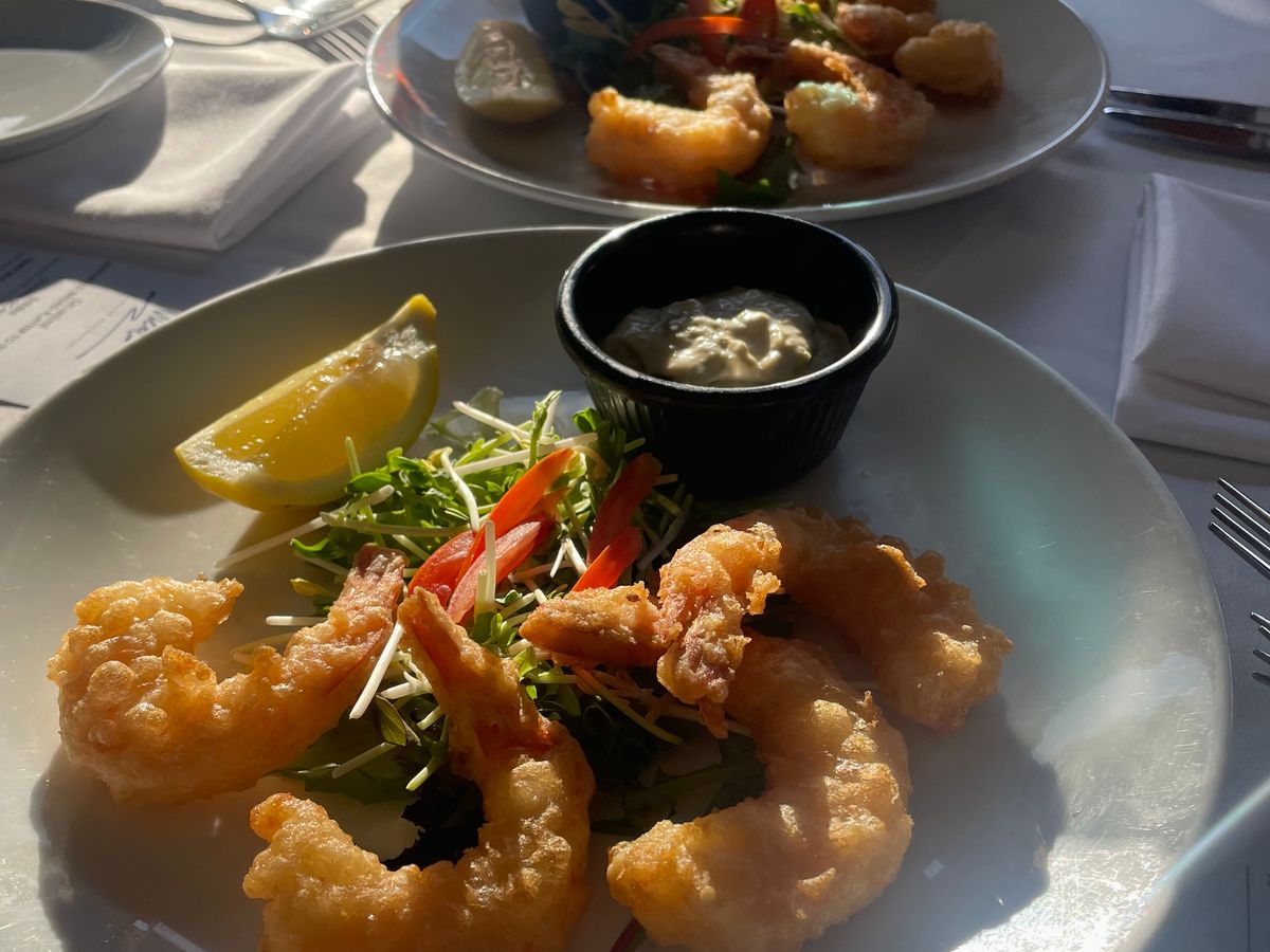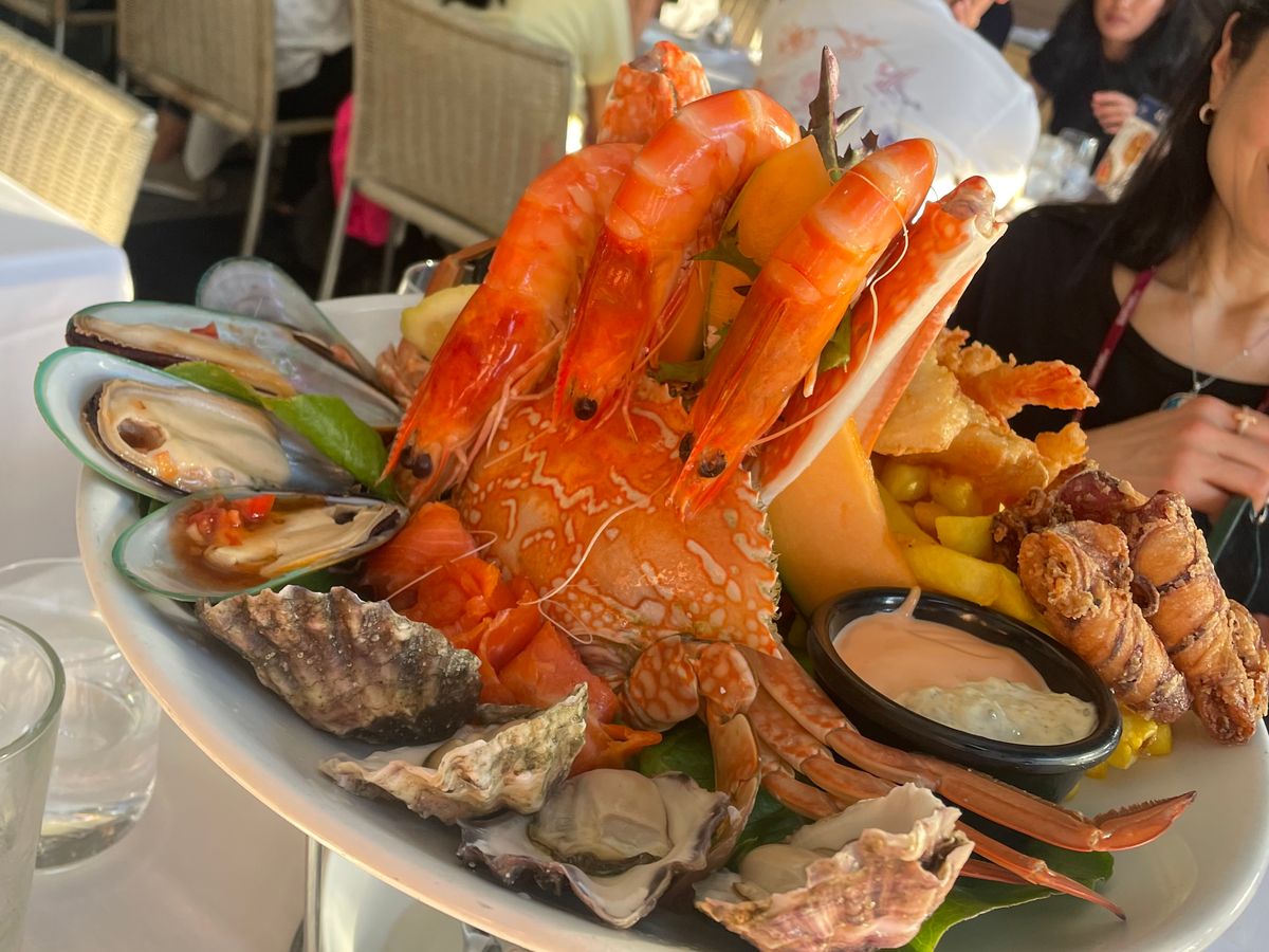 その日採れたての海の幸を冷製 温製とどれもこれも最高のお味でした。メイン料理はキングプラウンとsummerクラブ 牡蠣と写真は2人分で4人でこの倍量ありました