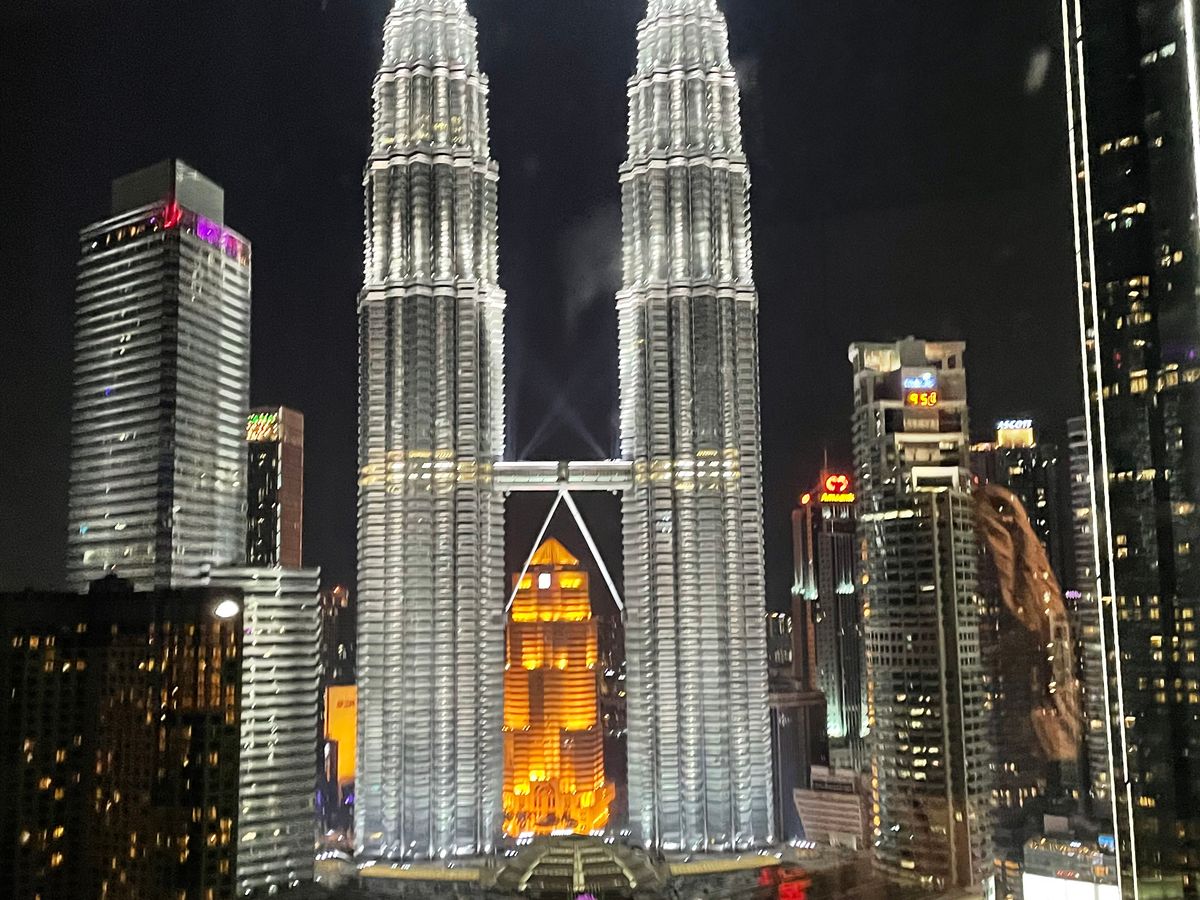 クラアルンプール着が16:00頃だったので、19:00に、SKY BARを予約。余裕だと思いきや意外と市内移動に時間がかかり、移動中にSKY BARに20:00になる旨電話。お互い拙い英語だったので、理解して貰えたか不安だったが、取り敢えずホテルにチェックイン。慌ててスマホ片手にスカイウォークを走り抜ける。既に20:00は過ぎていて、トレイダーホテルをやっと見つけSKY BARに到着。どうなるかと思ったがそんな苦労も吹っ飛ぶ程ペトロナスツインタワーは綺麗だし、店の雰囲気も素敵。追加オーダーをガンガンしたがお財布にも優しくてとてもいい思い出が出来ました。