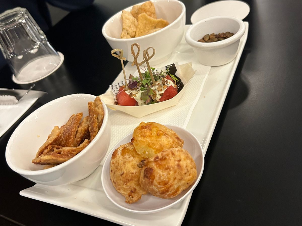 席に案内されたのは予約時間を過ぎてからでしたが、席に着いてしまえば次々とコース料理が運ばれてくるので困りません。(最初にドリンクとお肉の焼き加減は聞かれました)