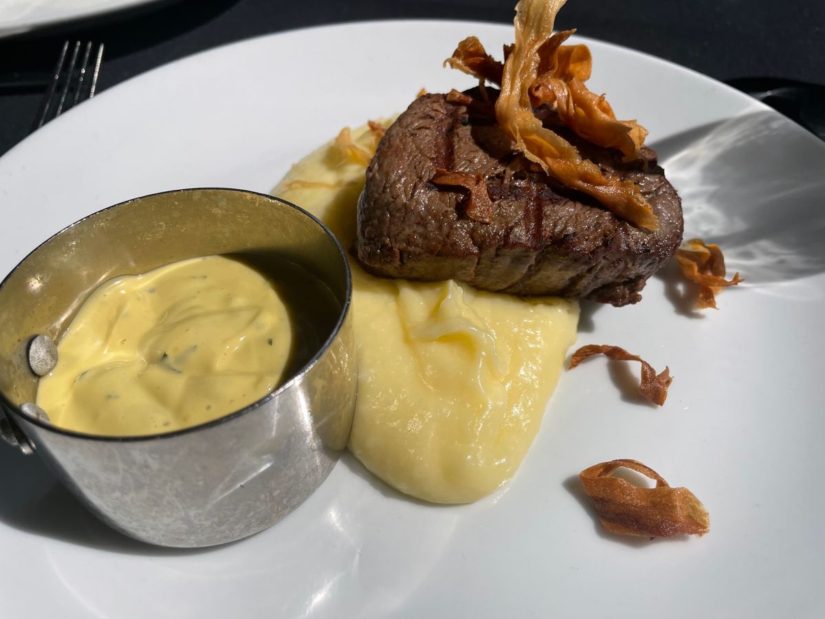 メインのお肉が出る前にサラダ、スープ等出るのでもうお腹が膨れてきました。お肉は半分も食べないで持ち帰りにしました。その場で食べ終わった方が美味しいと思いますが何ともなりません。次の日にホテルで食べました。