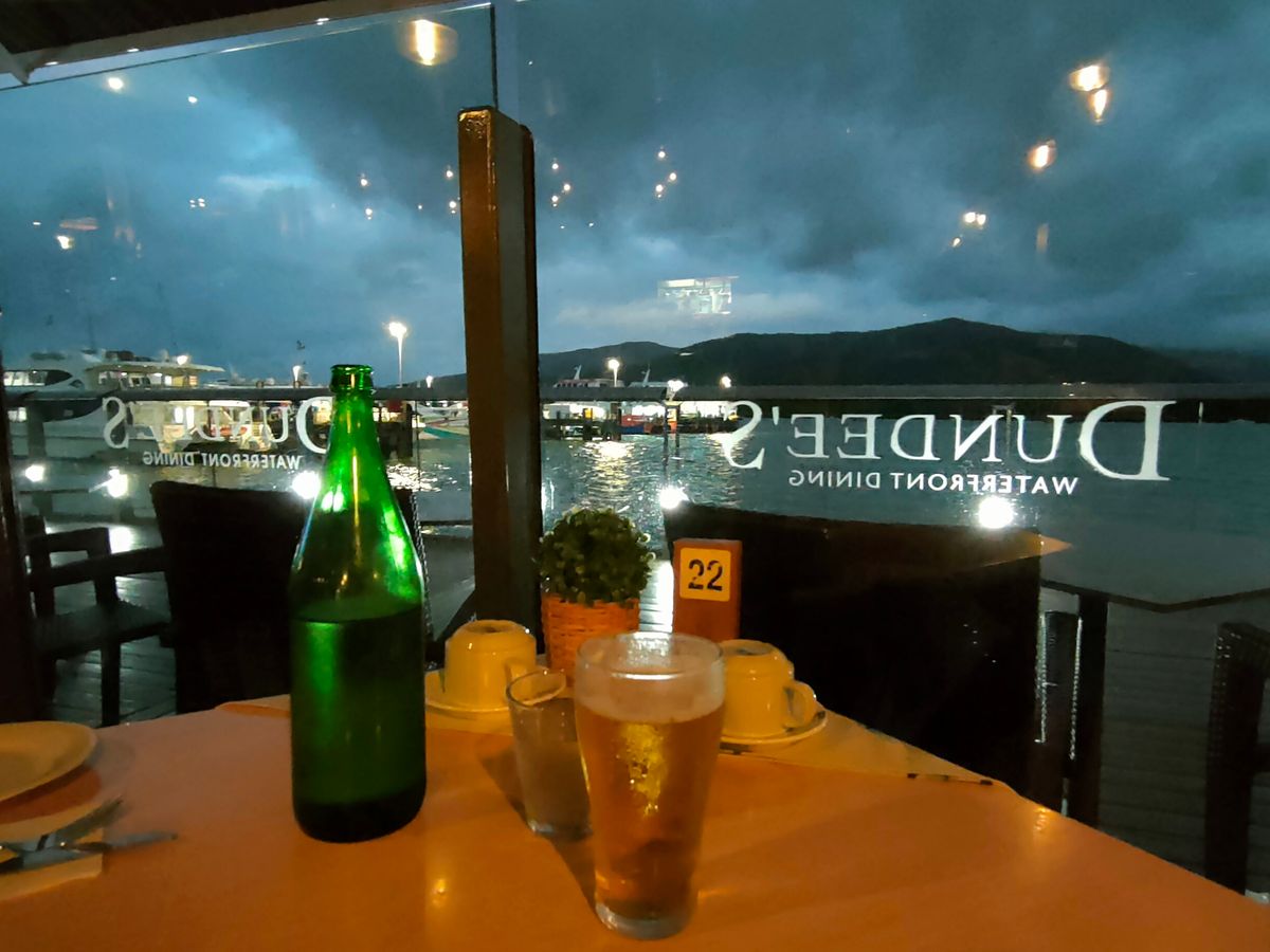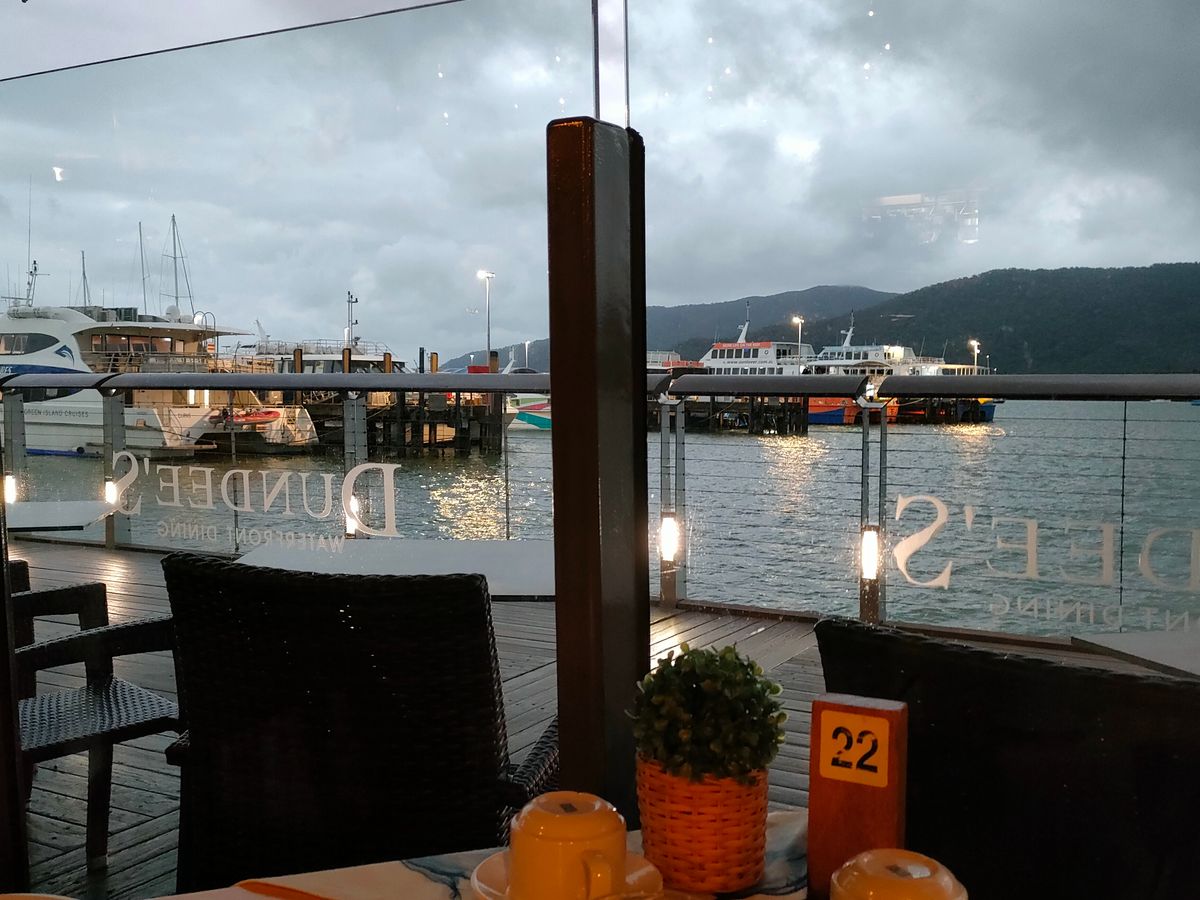 当日は直前に雨が降ってしまった関係で、テラス席ではありませんでしたが、店内のバーバービュー最前席に案内してもらいました。サンセットの30分程度前に予約するのがベストで、サンセットまでの様子と夜景を楽しみながら食事がてきます。予約のための追加料金もさほど高くないのでグレートビュープランをおすすめします。