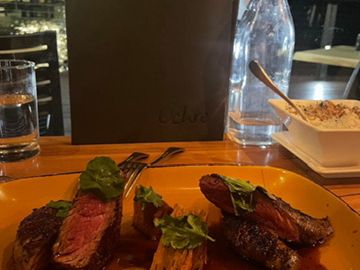 5年ぶりにハワイを訪れました。コロナ前に比べ、心なしか観光客がやや減ってるような感じでした。ハワイに来るときは、必ず食べるのがこのホノルルのルースズ・クリフです。いわゆる和牛のような霜降りではないですが、油っぽくもなく、赤身に近い肉肉しいステーキです。日本のテレビ等ではウルフギャングが取り上げられており、これまで、いくつか他のステーキ店でも食べましたが、ルースズ・クリフの肉、味が最も美味しい!だから今回も事前に予約をしてトマホークステーキを食べました。前菜のサラダ、シュリンプも美味しかったです。白ワインもカリフォルニア産シャルドネも良かったです。ぜひ、どなたかトライしてみてください。