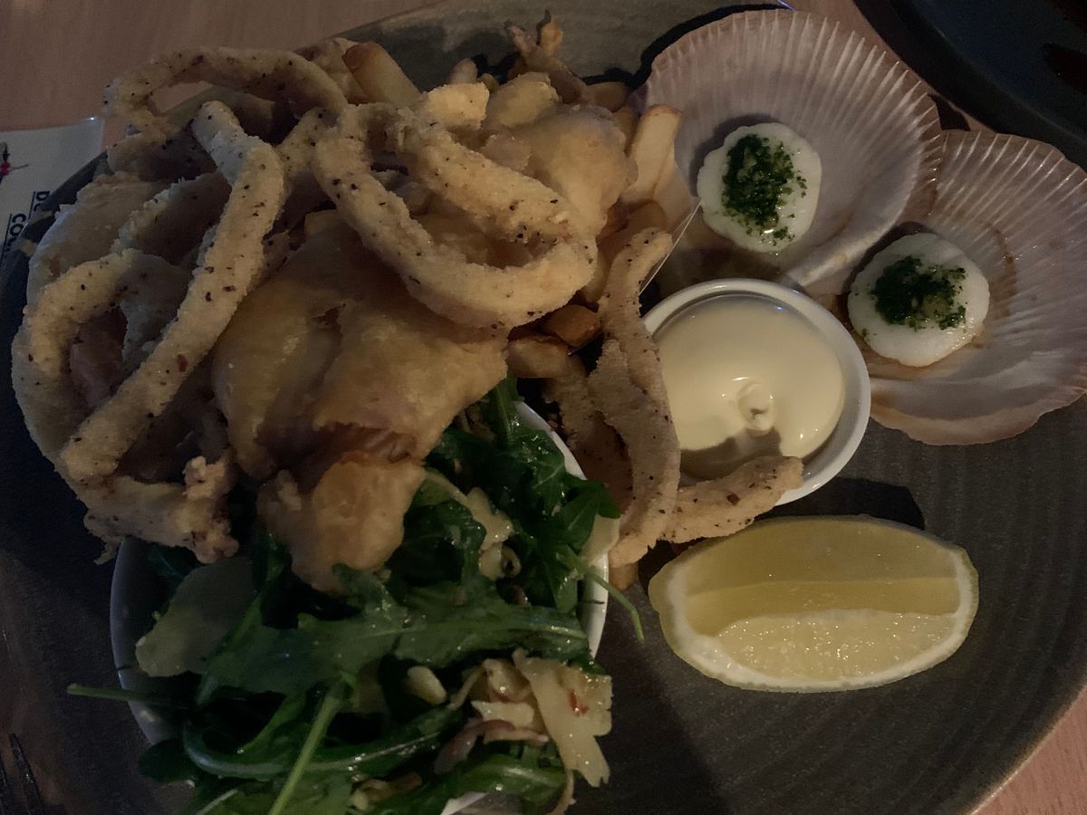 水族館横のDundee"sでランチをとり、トロピカルseafoodTowerを注文。新鮮な牡蠣やエビ、名物のイカフライを堪能、日本人のスタッフの温かい心遣いが嬉しく、ランチを楽しめました。