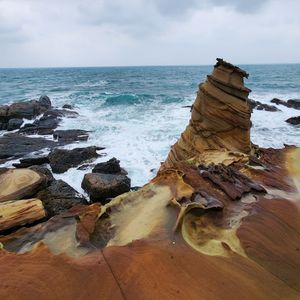 2/9午後に参加しました。あいにくの雨だったので、青い海を見ることはできませんでしたが、マーブル柄の岩はきれいでした。旧暦の大晦日だったので、九份で開いているお店はまばらでした。