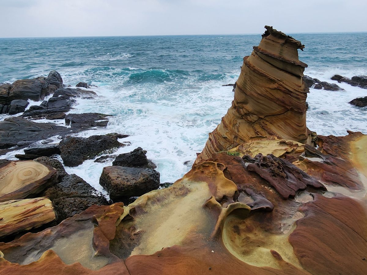 2/9午後に参加しました。あいにくの雨だったので、青い海を見ることはできませんでしたが、マーブル柄の岩はきれいでした。旧暦の大晦日だったので、九份で開いているお店はまばらでした。