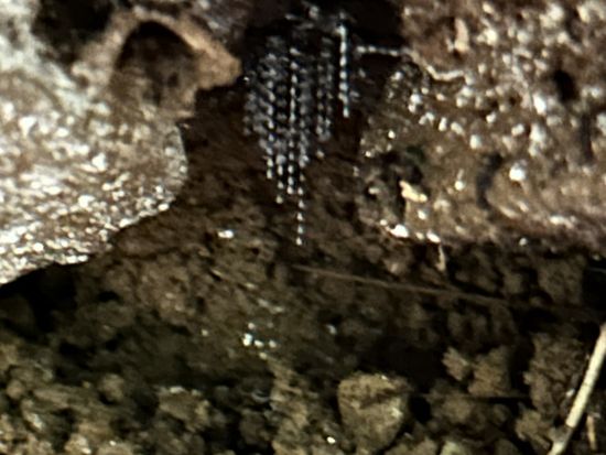 3か所目はパーリングブルックの滝展望台からの景色、5分程歩いて滝側からの景色・写真撮影。4か所目は50分程で西側稜線のナチュラルブリッジに到着。23年前夜の土ボタルに参加しましたが、昼間のナチュラルブリッジ・レインフォレストウォークは全く別の場所に感じます、夜は真っ暗なので当然ですが。ガイドさんが歩道の土手に土ボタルの粘液ツララを見つけてくれて写真を撮ることができました。お尻の先端から垂らす粘液ツララに夜光に寄ってくる虫を捕食するそうです。