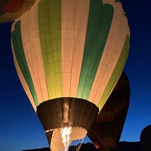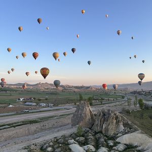 搭乗して気球内での姿勢などの説明を受けフライト準備をしました。上昇したのがわからないくらいふわ~と空へ。気が付けば周りは気球だらけ。素晴らしい景色を堪能することができました。