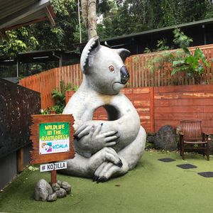 この日は一日中雨で、キュランダ鉄道の一部で倒木があったようで出発30分程遅れました。2025の4月からは、キュランダ村内のコアラガーデンでコアラ写真のプランは扱ってないそうです。ガイドさんからは、[コアラ写真は限定数があるので、もし間に合えば撮れるかも。ここで取れなければケアンズ市内にもコアラ写真撮れる場所ができたからそこに行ってみたら]と、説明ありました。