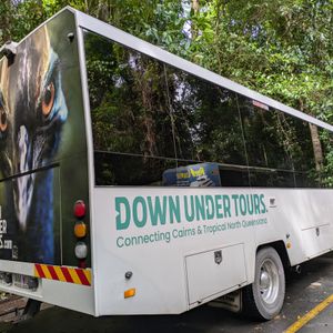 日本語のオーディオガイド付きということと、バスの窓が大きいというのも決め手でした。日本語オーディオガイドは自動的にその位置に来ると話し出します。歴史的な話が多く、直接ガイドさんの話も聴いてみたくて、使ったり使わなかったりでした。ポートダグラスでもピックアップしますが、ポートダグラスの街並みも見れて良かったです。モスマンゴージセンターは小雨でしたが、特に問題ありませんでした。デインツリーリバーは野生のワニがかなり見れて、感動しました。デインツリーの施設でのお昼はバスの中で肉が魚かを聞いてくれます。