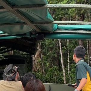 まさかのキュランダ鉄道が運休。往復スカイレールでした。当日朝、日にち変更も可能ですがどうしますか?と日本語スタッフからお迎え時に案内がありました。がっかりはしましたが、変更はせず参加しました。ですが、結果的に案内スタッフの素晴らしさに救われました。雨季に負けない笑顔、芸人さんのようなマイクパフォーマンス(うるさくはないですよ)、サンシャインはありませんでしたが、優しさに感動。アーミーダックが特に目立って良かったです。