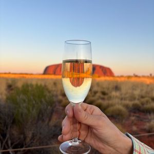 夕刻になり、スパークリングワインを飲みながら、夕日に染まっていく真っ赤なウルルを眺めることができ、この旅行の最大の目的を達成できた。途中、妻が体調を崩してしまったが、ショウタさんはじめスタッフの方々が迅速に対応してくださり助かりました(ありがとうございました!)。