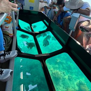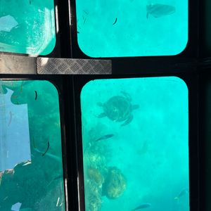 島で少し楽しんだ後は、グラスボートと半潜水艦に乗って、サンゴ礁やお魚さんたちを間近に見ることができました。