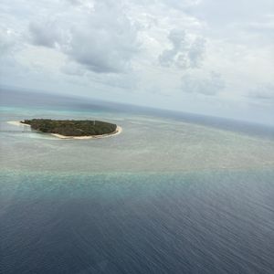 当日は曇っていて、船に乗っている間には雨が降っていたので、ヘリが飛ぶのか心配でしたが、なんとかヘリコプターに乗ることが出来ました。空が灰色だったので他の方の写真のようなきれいな景色ではありませんでしたが、広大なサンゴ礁を空から見ることができる貴重な体験だったと感じています。