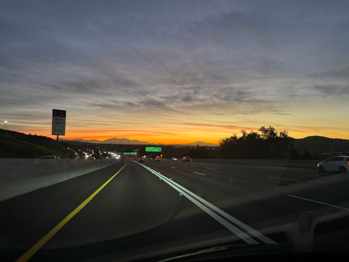 出発時の朝焼け、帰り道の夕焼けも空が広くてとっても綺麗でした。