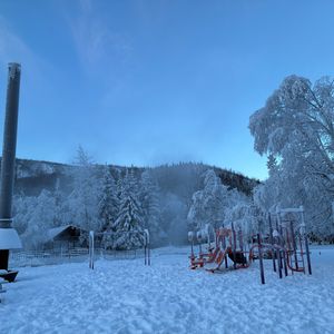 ノイシュバンシュタイン城**は、晴れた空の下、雪化粧と相まって、まるで絵画のような幻想的な美しさでした。