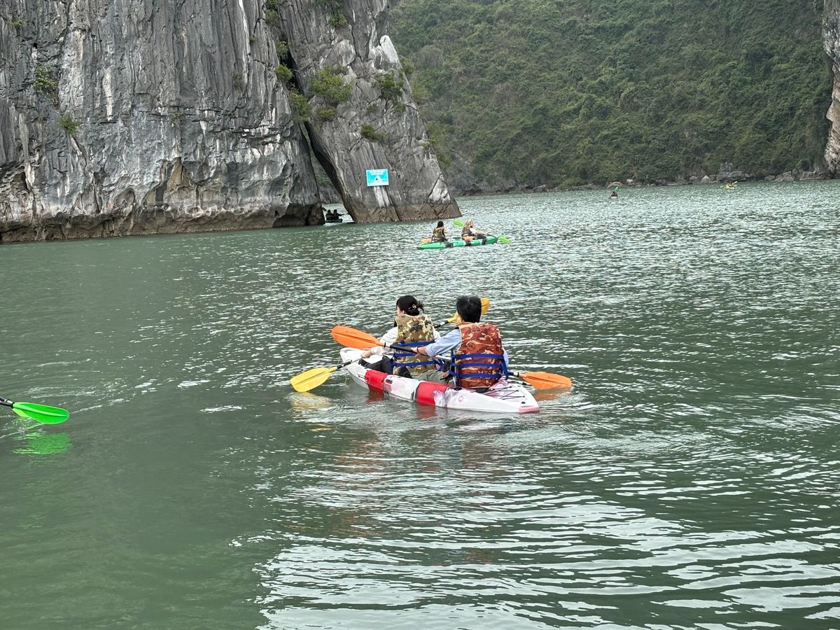 2年前にハロン湾クルーズに参加したので、今回は他の人の体験談を参考にして、こちらのツアーに参加しました。世界遺産のハロン湾は観光客が多く、特に鍾乳洞への入場待ちに辟易しましたが、南に隣接するランハ湾は穏やかで手つかずの自然が残り、カヤックなどのアクティビティがゆったり楽しめました。ブライト洞窟をボートで抜けるコースでは、途中のカットバ島でラングール(金色の頭のサル)が見れてラッキーでした。ツアー当日は波が高い予報でしたが、7時間以上の乗船中ほとんど揺れませんでした。日本人は私達夫婦2人だけでしたが、サンデッキでのサンセットパーティーの賑やかさが苦手なら、船内でハロン湾の穏やかな景色を見たりして、ゆったりくつろげます。