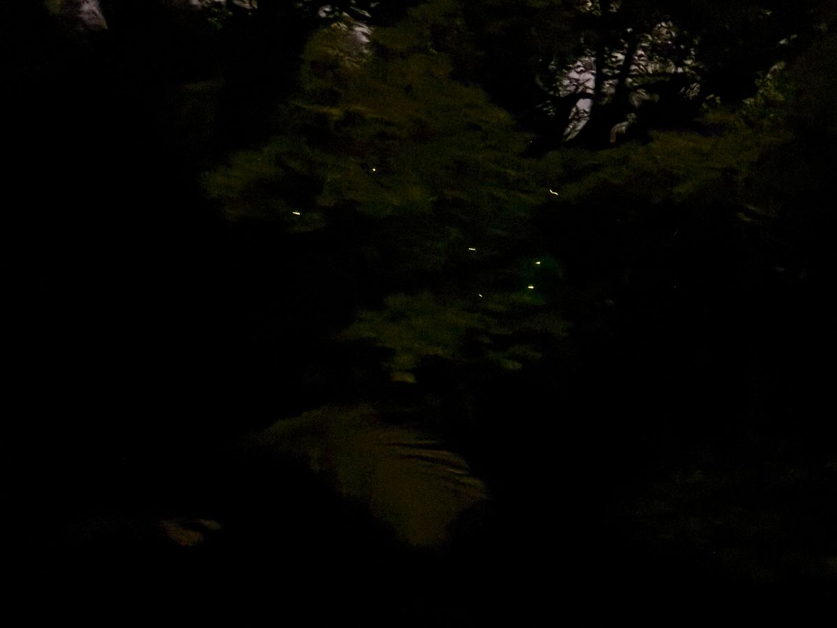 食後はいよいよホタル鑑賞。鑑賞場所は自分も見えないほどに真っ暗。その暗闇の中、クリスマスツリーのようにホタルがピカピカ…もう本当に綺麗すぎて感動しました!!!