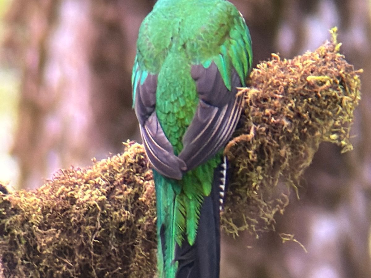 翌朝は4時50分にホテル出発、10分ほどで観察場所に着きました。お天気は良くちょうど雛鳥に餌を親鳥が運ぶ時期に当たり往復するケツァールのオス、メスをガイドさんの望遠鏡で見られました。写真は他の参加者からいろいろシェアしてもらい感謝です