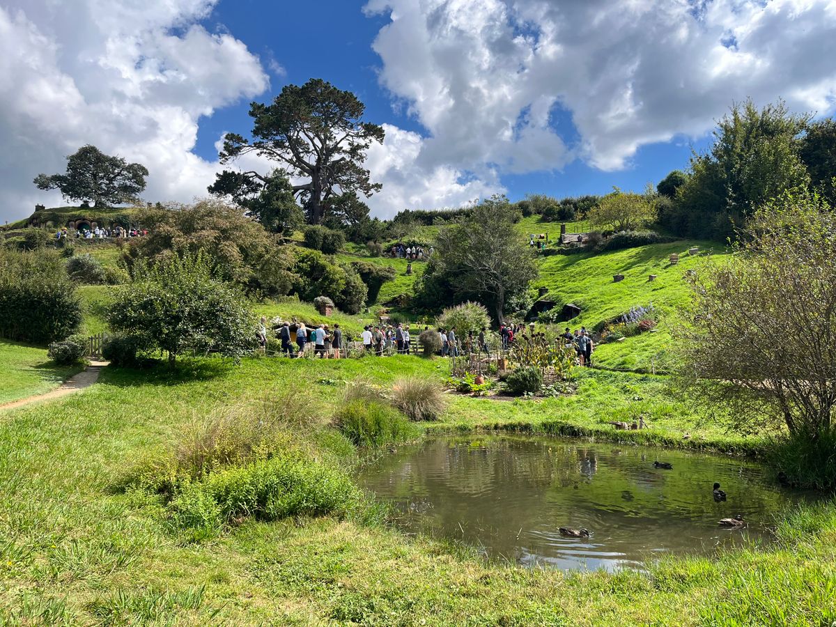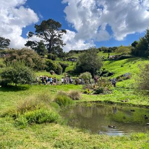 朝6時20分という早い集合時間だったので朝食はホテルでランチパックのようなものを用意してもらい持参しました。私たち2人だけの参加だったのでドライバー兼ガイドさんと3人でワゴン車で向かいました。ガイドさんはオークランド在住10年近くの日本人男性の方で、もう600回ほどガイドしているベテランさんでした。土ボタル見学は洞窟内の照明のトラブルで開始が20分ほど遅れて始まりましたが、ガイドさんの交渉で比較的早くに入場できました。徒歩で洞窟内を回った後、船でホタル鑑賞しました。洞窟の天井はあまり高くなく天井に張り巡らせたロープを船頭さんが伝って周ります。船にはガイドさんは乗船しません。続いて1時間弱車で移動しホビット村へ。農場内に作られた映画の「セット」ですが、駐車場からエントランス、チケット売り場やショップ、レストランなどディズニーランドやUSJを小さくした感じです。映画のシーンに合わせてガイドさんが詳しく説明明してくれます。帰りの飛行機でホビットシリーズを何本か見ましたが、前もってみておくと良かったです。Amazonで見られます。オークランドに戻ったのは17時過ぎでした。日曜日で途中渋滞も少々ありましたが、明るいうちに着きました。