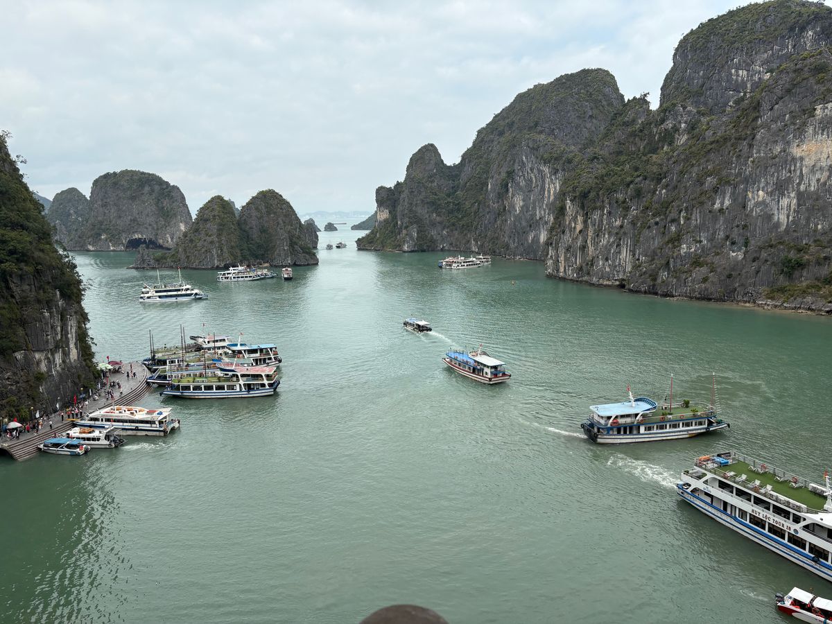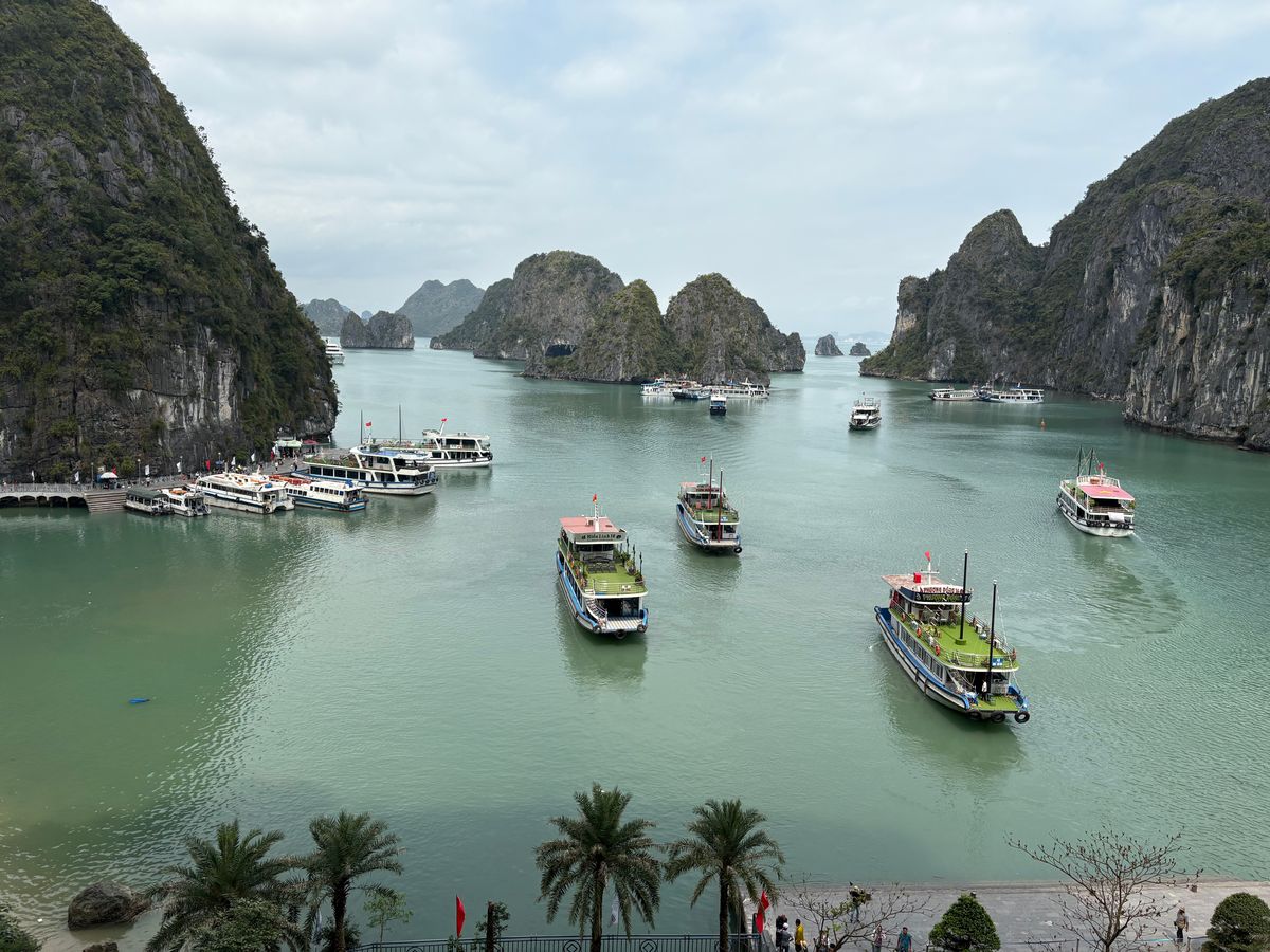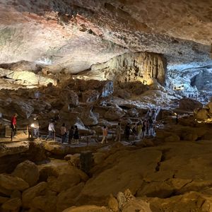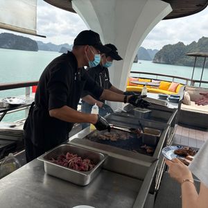 船の写真のイメージからタイタニックのような優雅な感じをイメージしていましたが優雅というよりインターナショナルな楽しい体験ができた一日でした!ガイドさんが着いてくれたおかげで窓際の良い席を確保してもらったりアフタヌーンティーのお茶やコーヒーを取っておいてもらえたり大人数の中すばしっこくリードしてもらえたので安心して過ごせました!洞窟の中も見応えあったし船の中も屋内も船上もゆっくりでき楽しかったです。ハノイの喧騒から離れて楽しい一日でした。