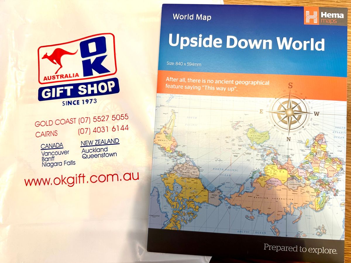 子どもがオーストラリア特有の「逆さ地図」が欲しい!と言い、ツアーでガイドしてもらったシェーンさんに「OKギフトショップにあるよ〜」と教えてもらいました。