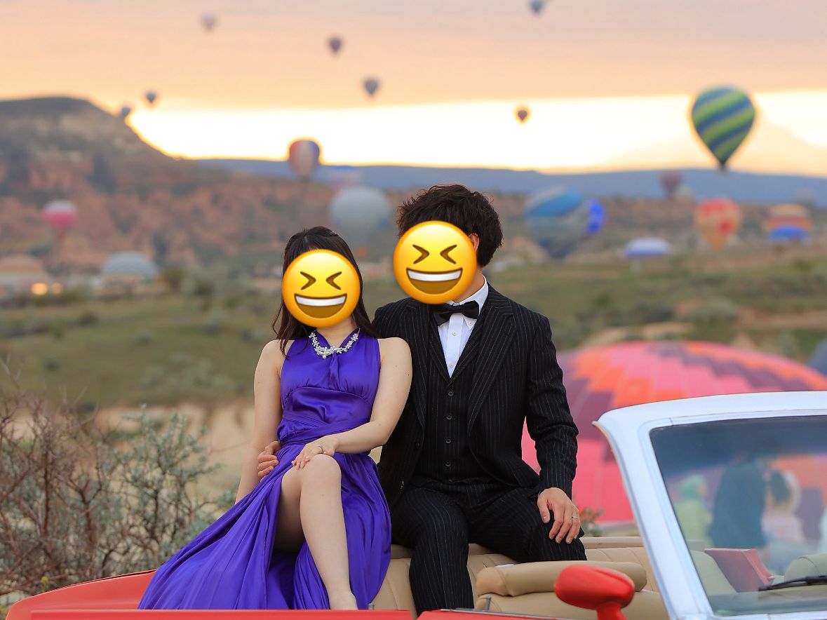 気球をバックに早朝のカッパドキアでドレス写真撮影<貸切/3時間/送迎付き/日本語アシスタント付きプランあり/カッパドキア>