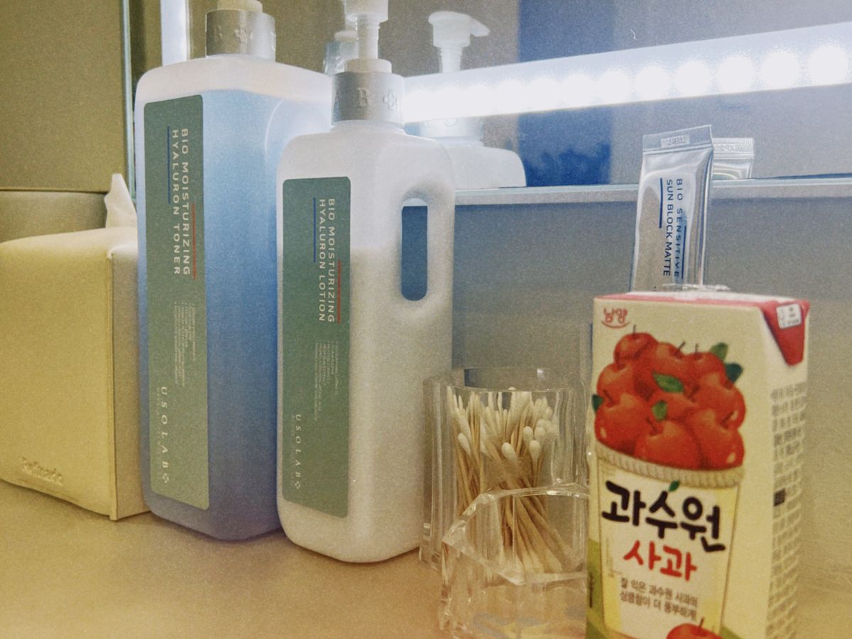 クレンジング、トナー、ローションなどは置いてありますが、こだわりがあれば、ご自身のを持って行っても良いかもです。