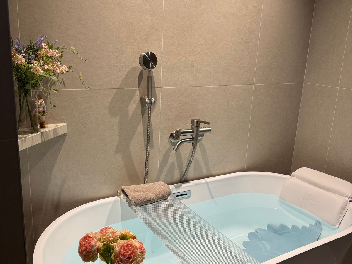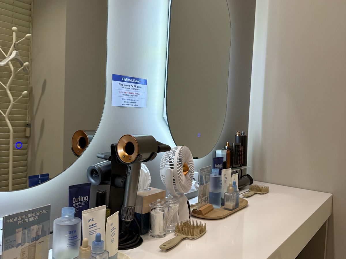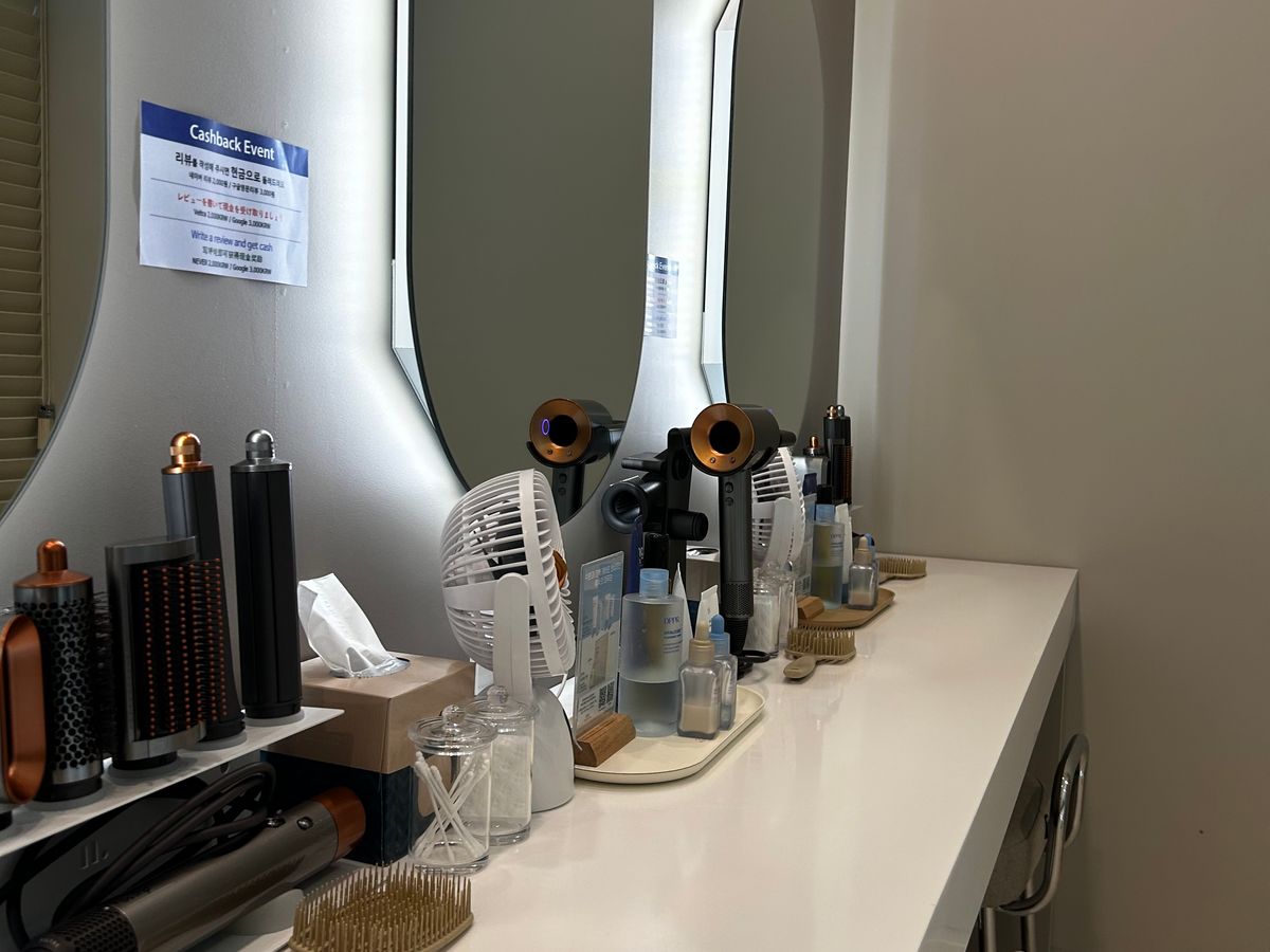 とても清潔で髪の毛一本も落ちてなく、お風呂場はもちろん、パウダールームの豊富さ(ダイソン完備、スキンケア一式揃ってる)に驚きました。