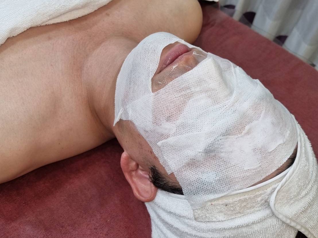 顔のマッサージの後は、クリーム塗られたりなんだりして、石膏?のパックをされて、少し待って、ホットタオルで綺麗に拭いてくれて、クリーム塗って終わり…という感じでした。