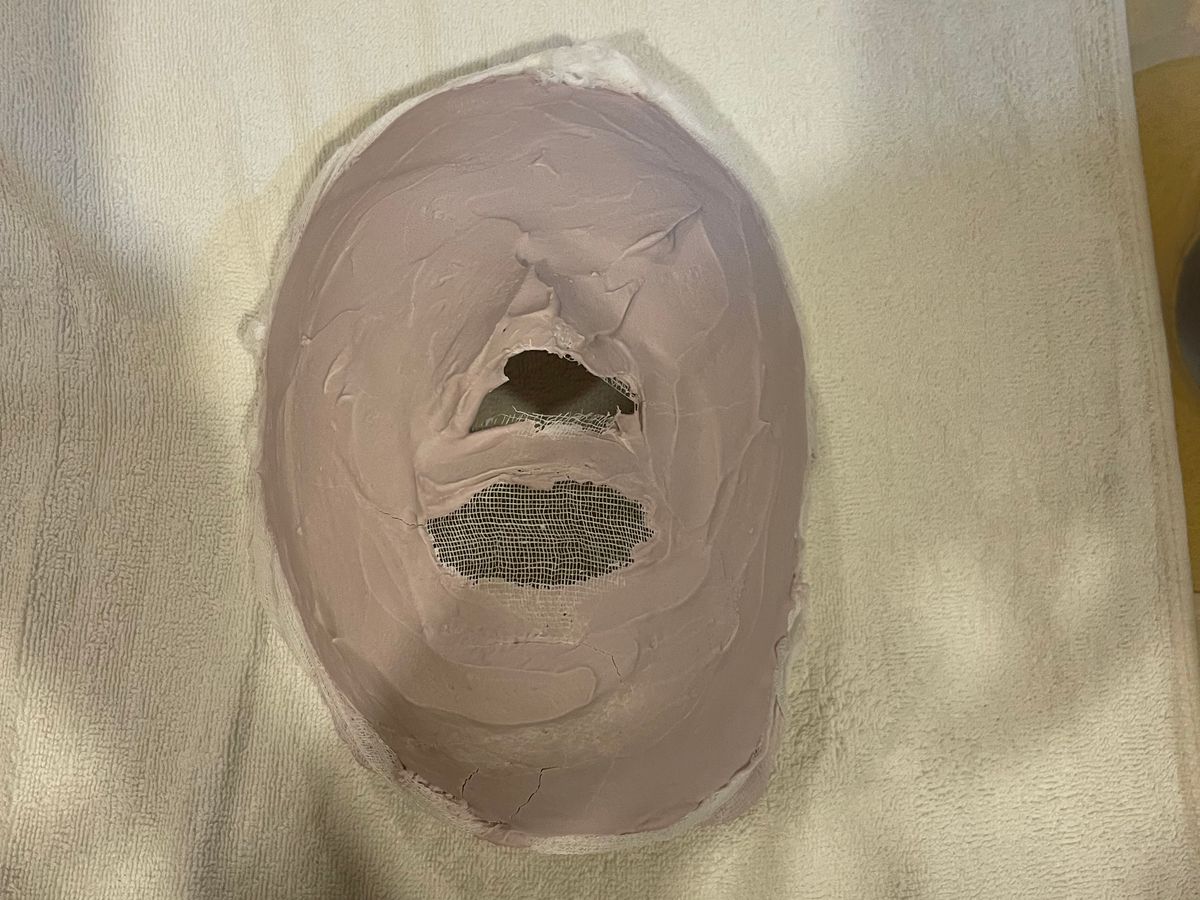 コルギの後の美白パックは、何層にもひんやりしたパックを顔にのせて、最後には、写真に載せた顔の石膏のような型がとれます。