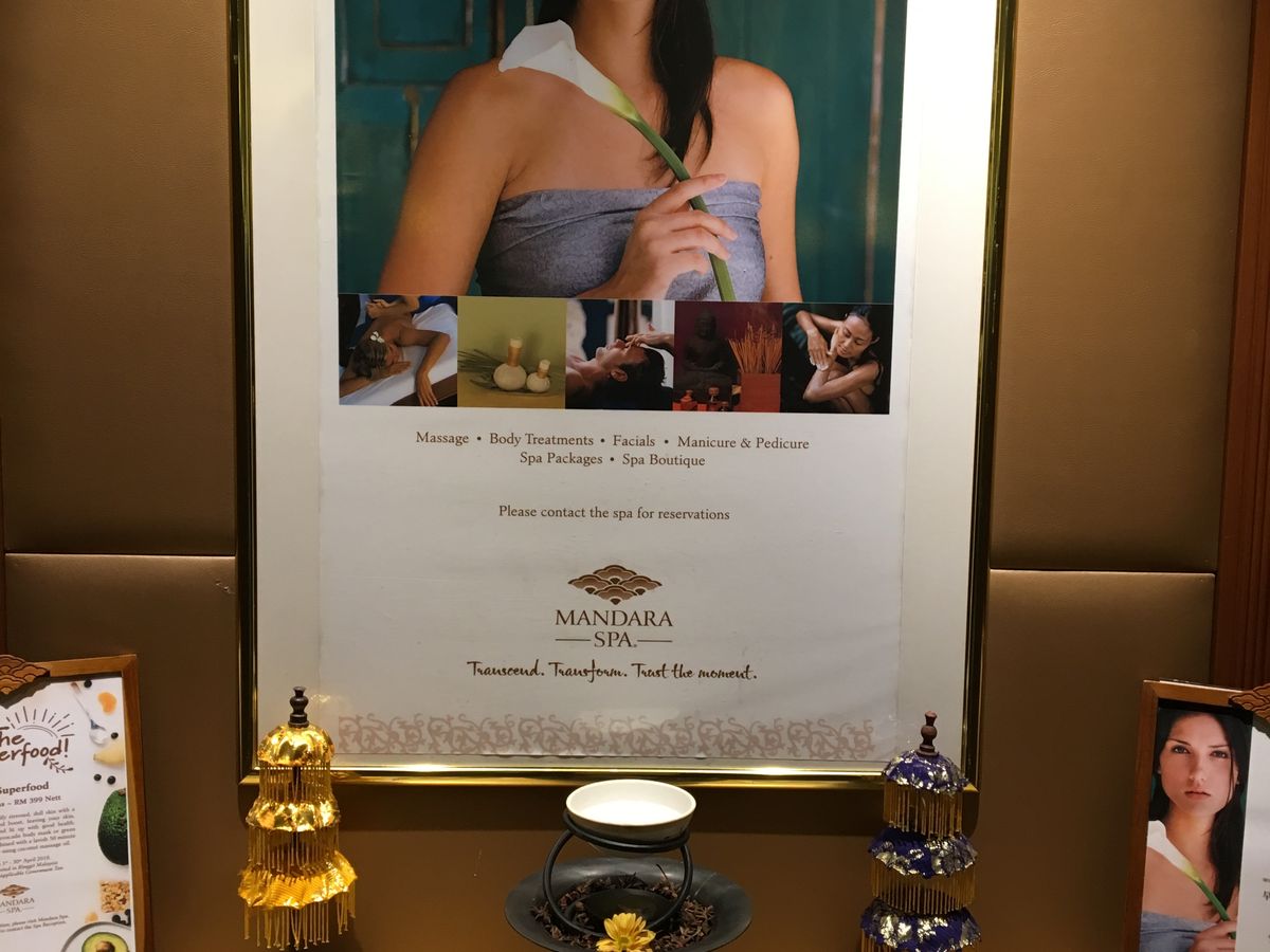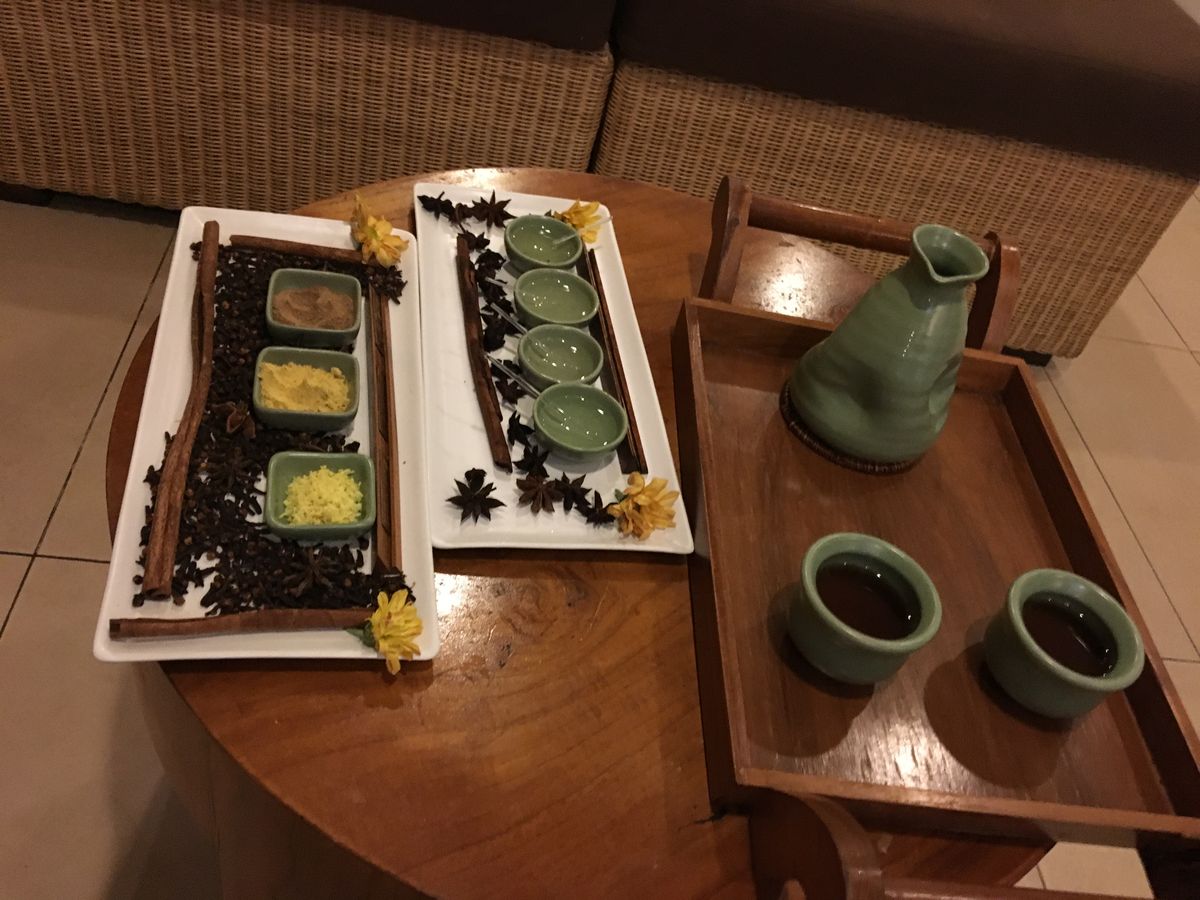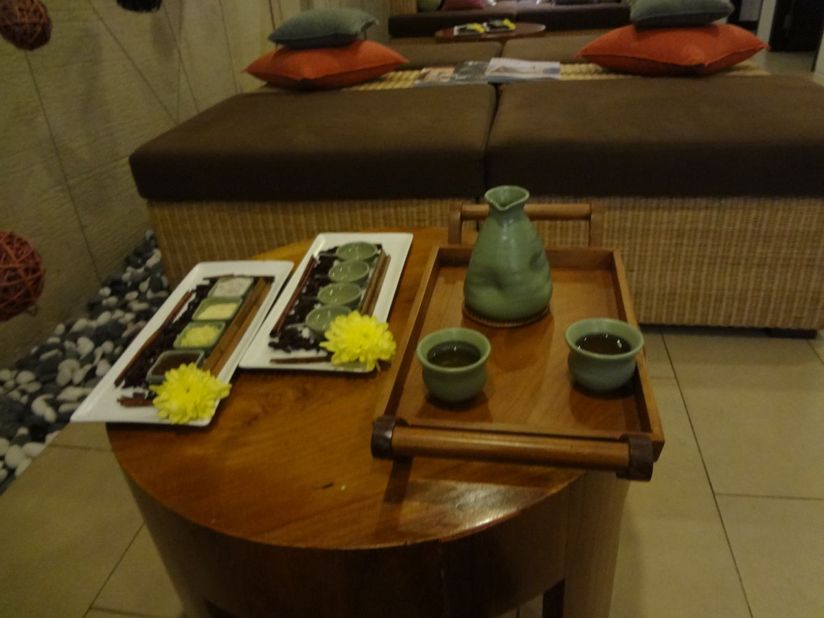 場所がわかりにくいと口コミにあったのですが、ルネッサンスホテルに着くと、ドアボーイが親切に行き方を教えてくれました。ホテル内のスパだけあって外観も落ち着いたものでした。中に入ると、お茶をいただきながら、4種類のオイルから1つチョイスします。(写真の湯飲みの向こう側がオイルです。)マッサージはとても気持ちよく、眠ってしましそうになりました。背中の筋肉で凝ったところがあったのですが、何も言わなくてもそこを丁寧に揉みほぐしてくれました。触れただけで筋肉の状態が分かるのかもしれません。とてもリラックスできたスパでした。