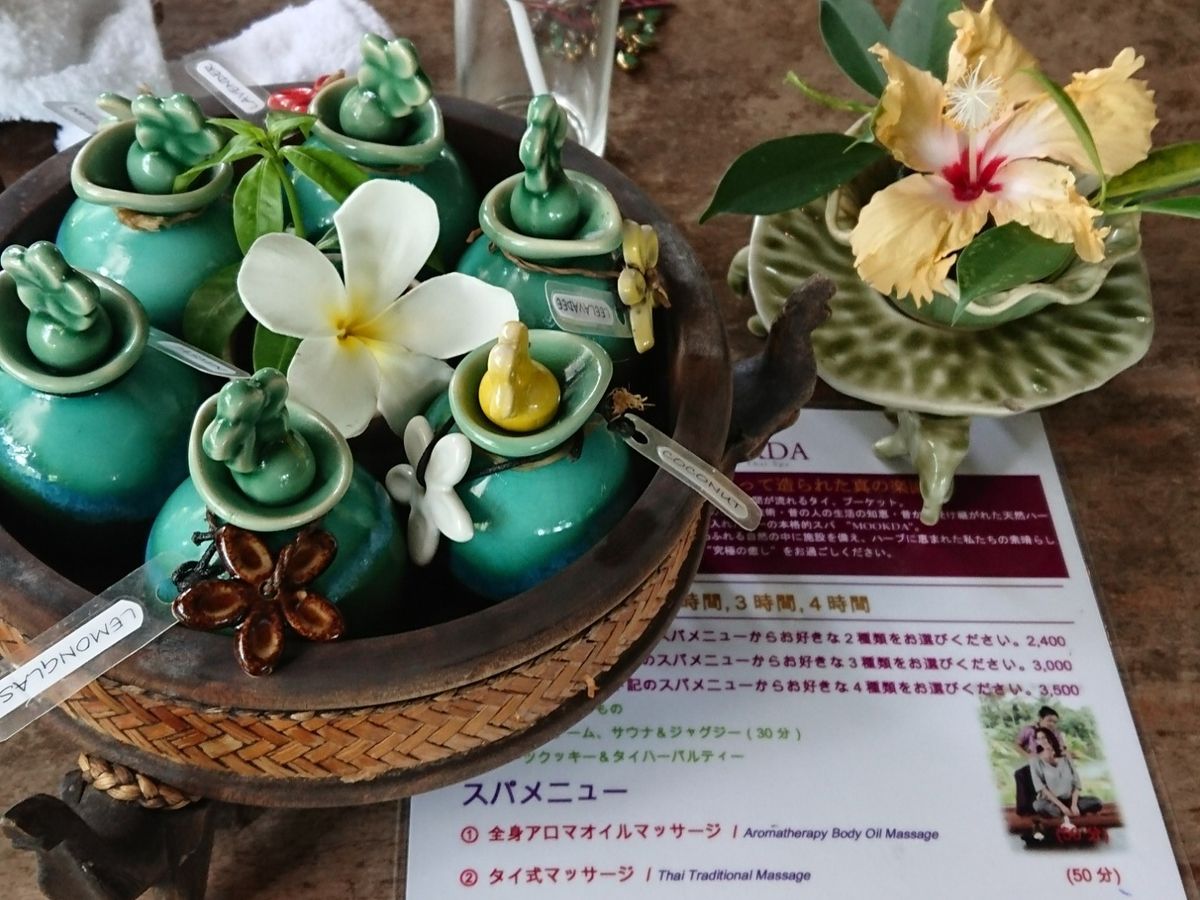 プーケット旅行最終日に3時間コースを予約しました。ホテルへお迎えに来てくれて到着すると大自然溢れる素敵な風景が広がっていました。メニューの中からオイルマッサージ、フェイシャル、ホットストトーンの3つを選びました。オイルの香りも選べました。その後はサウナやジャグジーの所で30分ほど過ごし、個室に移動しました。友達と2人部屋でした。個室は少し薄暗い感じでしたが綺麗でした。ベットに横になり、まずはホットストトーンで血流を良くし、オイルマッサージ、フェイシャルをやりました。オイルマッサージは日ごろの疲れが取れるような気持ち良さで途中で寝てしまいました。フェイシャルはスクラブのようなザラザラしたものを塗られ、そのあとクリームのようなものを塗られ、パックして20分ほどその状態で待ちました。この時も爆睡。そのあとクリームを拭き取り、簡単にマッサージして終了。シャワーを浴びて化粧室のようなところで化粧すると、化粧ノリが良く、肌がきれいになったように感じました。ドライヤーは少し風圧が弱いですがドライヤーがあり助かりました。その後は近くのお店でサービスのタオマンガイを食べました。美味しかったです!ホテルのお迎えまでムックダーに併設されているお店でクリームやグッズを買いました。日本人スタッフもいたため、安心して受けることが出来ました。満足です!